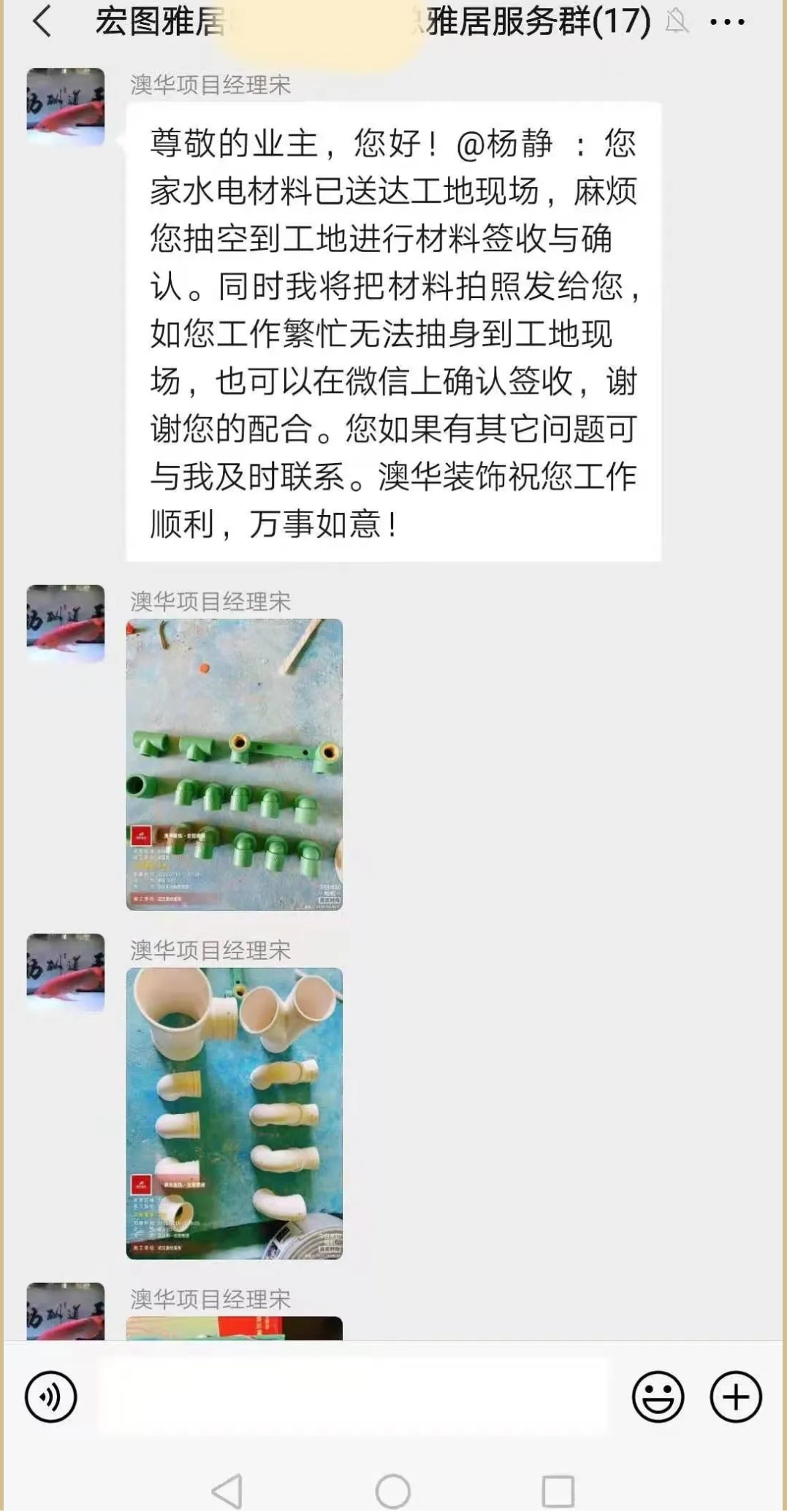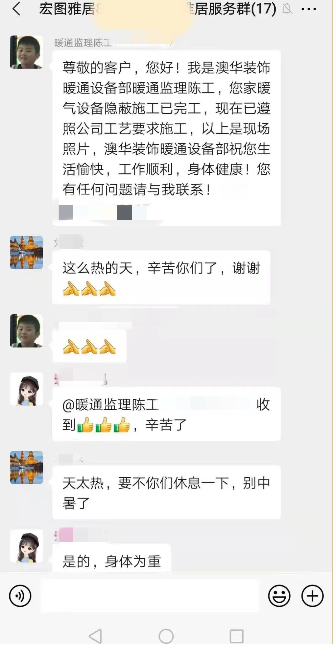 事事有反饋,件件有回應。在每個工程節點,宋國成都會在服務群里向業主通報,每個施工周期精確到日,每個工序也都會向業主做交代和講解。