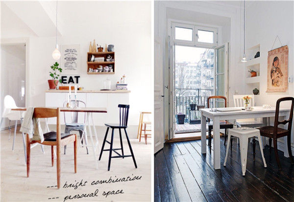 很多人在腦子里沒有概念的時候,都不敢輕易嘗試混搭,總覺得長得不一樣的椅子一旦像“湊數(shù)”,就會破壞掉美感;或者各種顏色的椅子放在一起,會很浮夸,其實不然。