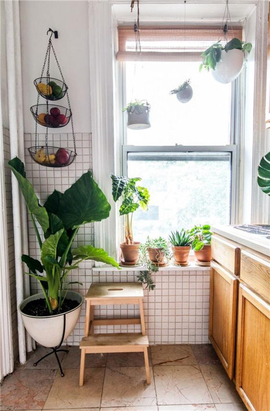 靠窗布置綠化,能使植物接受更多的日照,并形成室內(nèi)綠色景觀。可以作成花槽或低臺上置小型盆栽等方式。應根據(jù)不同部位,選好相應的植物品色,但室內(nèi)綠化通常總是利用室內(nèi)剩余空間,或不影響交通的墻邊、角隅,并利用懸、吊、壁龕、壁架等方式充分利用空間,盡量少占室內(nèi)使用面積。同時,某些攀援、藤蘿等植物又宜于垂懸以充分展現(xiàn)其風姿。因此,在進行家居設計布置綠化時,應從平面和垂直兩方面進行考慮,使之形成立體的綠色環(huán)境。