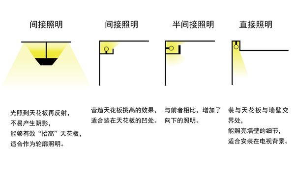 接下來我們綜合一下照明方式與燈光分類,為大家科普最適宜的照明搭配。