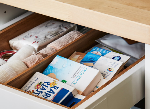 建議在方便拿取的地方放置家庭醫(yī)藥包,溫度計、醫(yī)用酒精、棉簽、紗布、跌打損傷藥膏等基礎(chǔ)護理用品都可以放進去,意外發(fā)生也能保證第一時間得到有效處理。