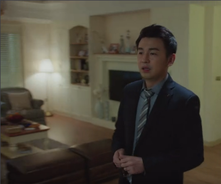 客廳,讓人有點一言難盡。棕色的沙發與紅棕色實木地板成為空間主色調,在純白墻面及電視背景墻的對比之下,顯出厚重、沉悶之感,讓人頗感壓抑。怪不得白天在公司勞累了一天回到家的丈夫陳俊生臉上毫無喜色。