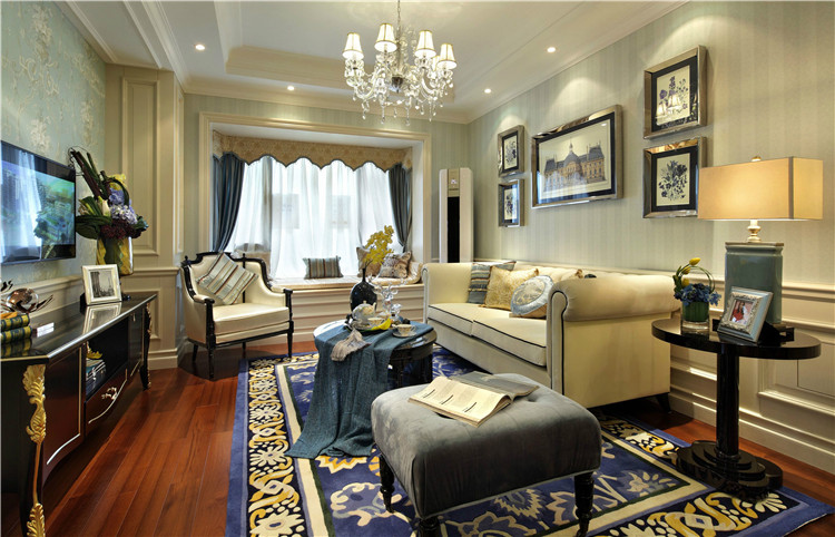 通過吊頂及墻面的獨特造型保留美式經典的歷史感,摒棄了其中繁瑣的裝潢,讓客廳在保證簡潔明快的同時顯得較清爽自然。客廳一角設置一個簡易讀書角落,由此劃分為兩個功能區,互不打擾,更方便家人們的相互陪伴,家有小戶型的朋友該好好學習了!