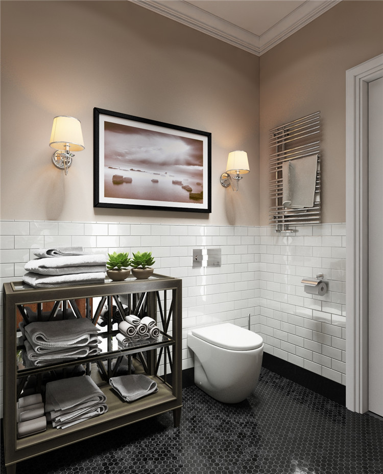 很多人就讓馬桶上方空著,這其實是一種浪費。加個小擱板,放上一點小綠植,只需簡單裝扮,小清新文藝風(fēng)走起~用來擱置紙巾等物品也很適宜,這個高度剛好避免了地面的潮濕之氣,拿東西也很順手。