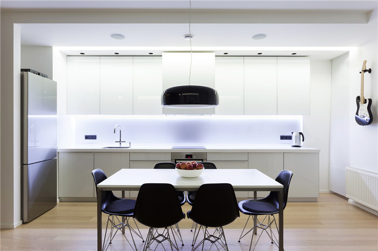 藏在櫥柜底部的隱蔽燈源,營造出美觀整潔的廚房,實用技能滿分。有了它,洗菜切菜能直接享受自上而下的光源照射,再也不怕因為背部陰影遮擋光源使得眼前晦暗不明了。