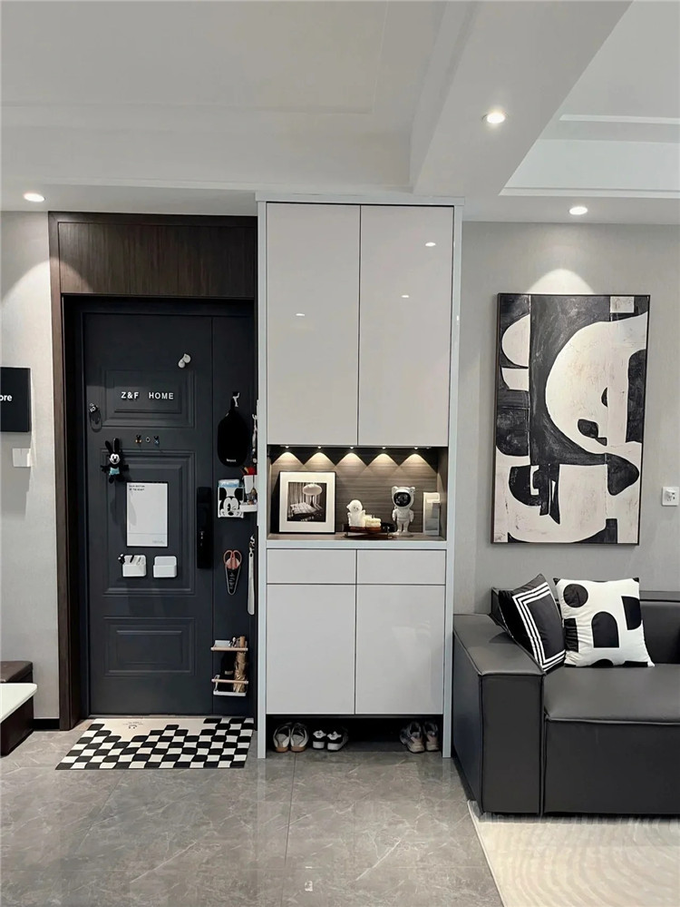 有一些特殊戶型,入戶門正對墻面,這時不用著急,直接將收納柜放在墻的前方就行。