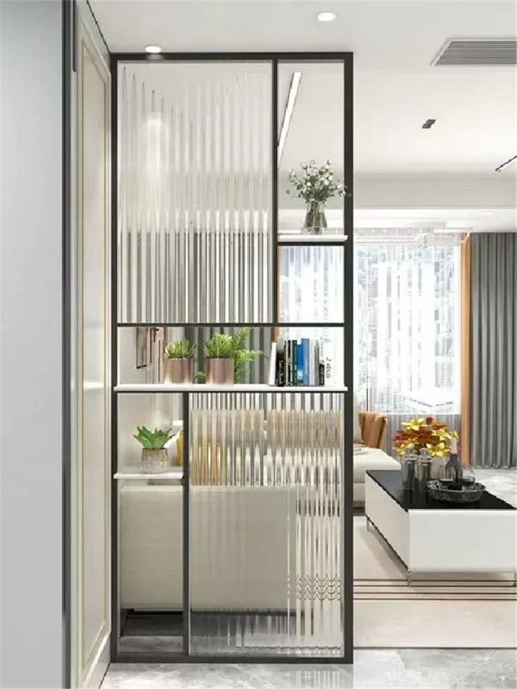 如擔心隔斷影響采光,可將收納功能集中于隔斷的下半部分,至于上半部分,可以做成鏤空或者直接用玻璃。