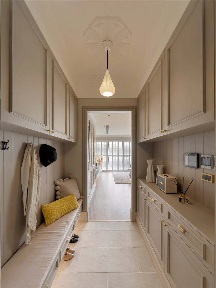還有一些戶型,入戶空間非常充足,這時候完全可以將玄關區打造成一個步入式鞋帽間,進一步完善空間機能。