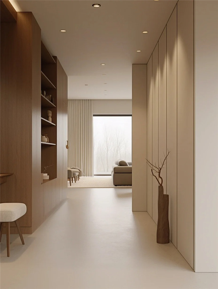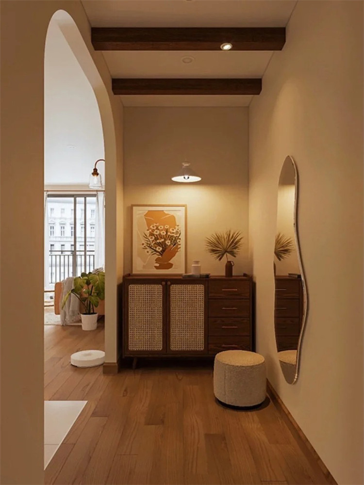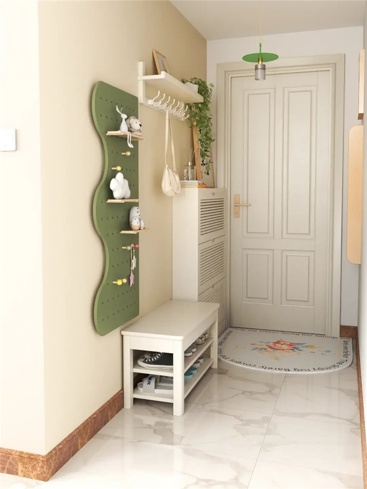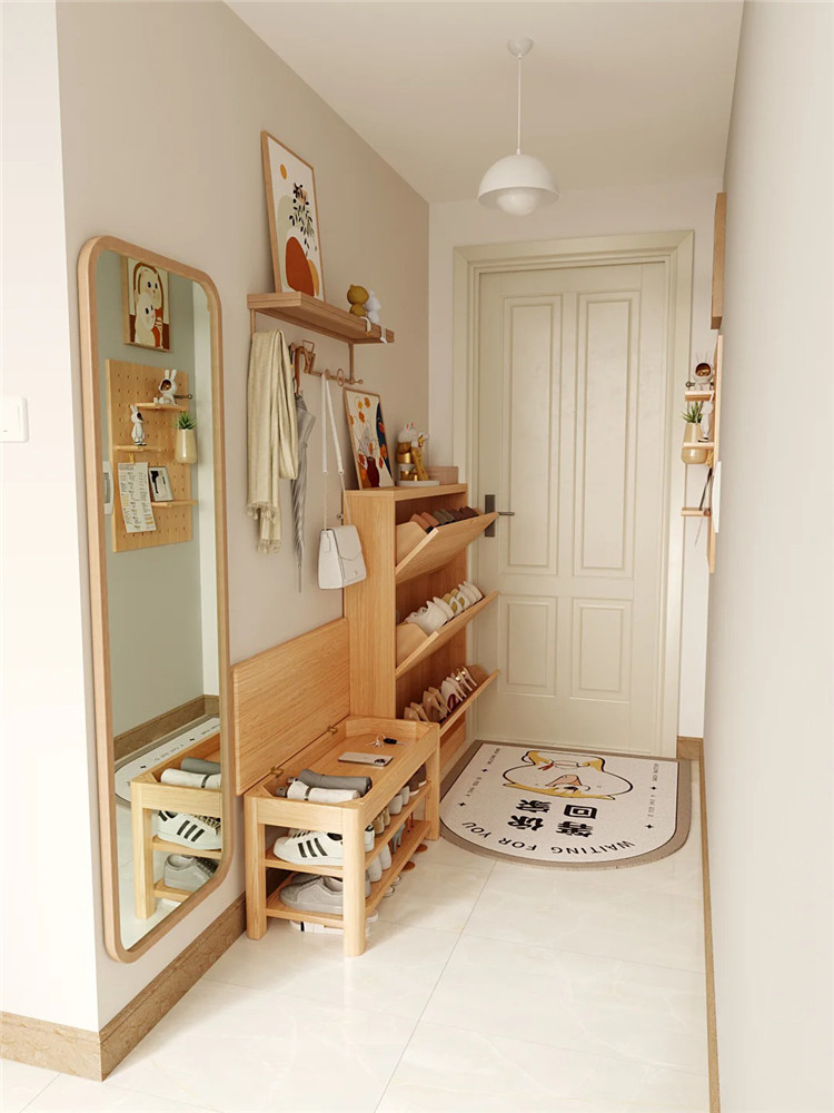 值得注意的是,如果走廊本身空間就偏狹窄,做鞋柜后,需盡量留出1m以上的寬度,以免影響日常行走,增加壓抑感。