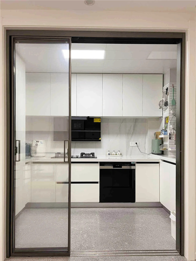 早期廚房裝修喜歡安裝地軌推拉門,但是會(huì)讓地面有衛(wèi)生死角,很多污漬進(jìn)入軌道槽內(nèi),就很難再清潔出來(lái)。目前比較流行的是做吊軌推拉門與隱形地軌推拉門,可大大減小清潔難度。