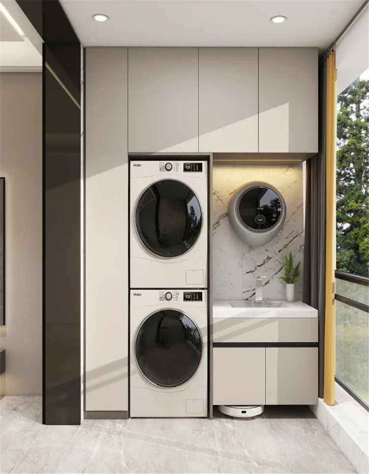 家務(wù)減負(fù)第一步,先要在家里規(guī)劃一個(gè)家政區(qū)。一般建議定制一組家政柜,集中存放各種清潔工具和清潔用品,用的時(shí)候拿取方便,柜門關(guān)上,整齊利落。