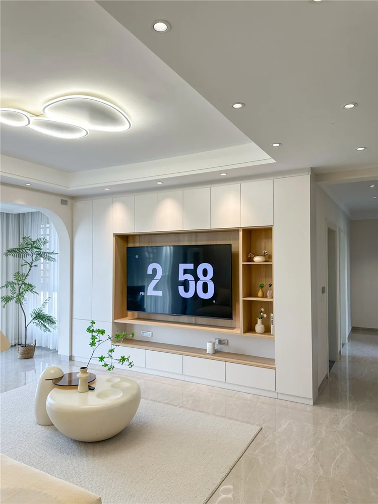 尤其是電視柜,強(qiáng)烈建議提前預(yù)留一個(gè)空間,將插座、電線等全都隱藏,減少落塵點(diǎn)。
