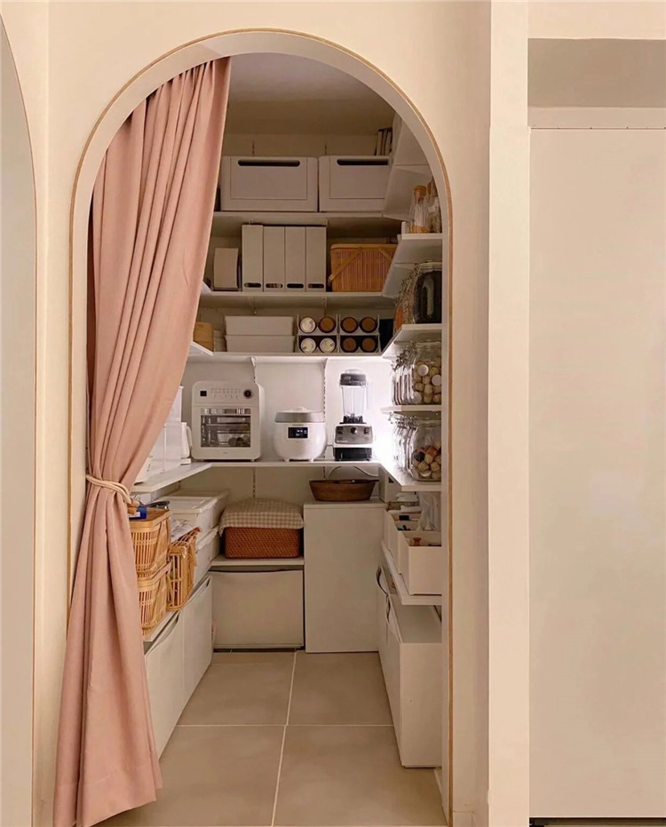 大家可以利用房子采光不好的暗區(qū)或者走廊區(qū)域做獨(dú)立儲(chǔ)物間,將閑置的花盆、滑板車、打氣筒、工具箱等各項(xiàng)雜物,一并收納。
