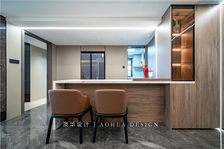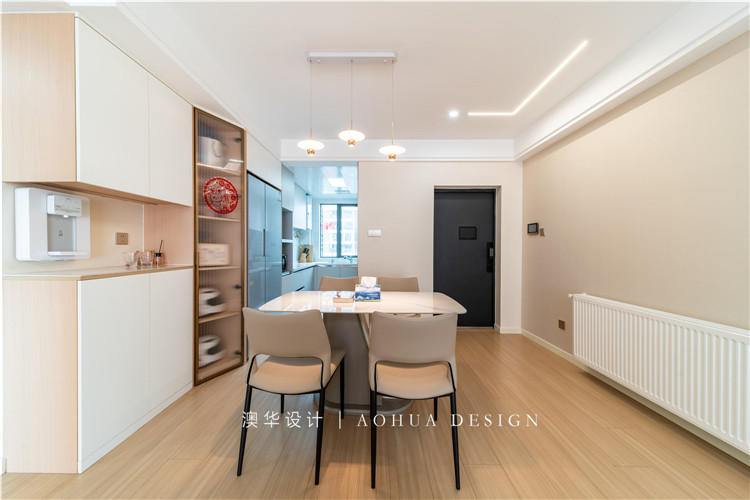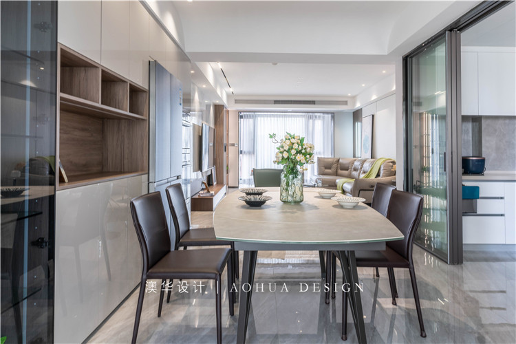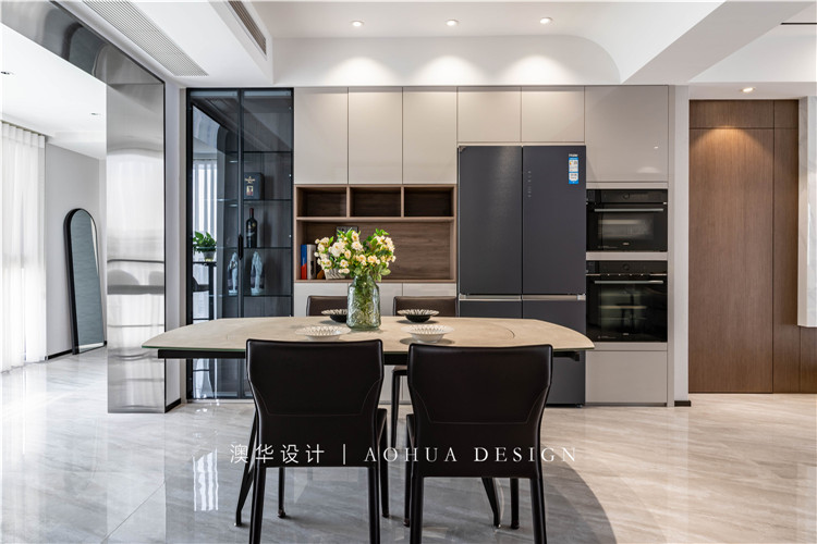 在【中建星光城】這個項目中,櫥柜與餐邊柜銜接,冰箱內(nèi)嵌其中,無論是從餐廳還是廚房,取物都非常方。