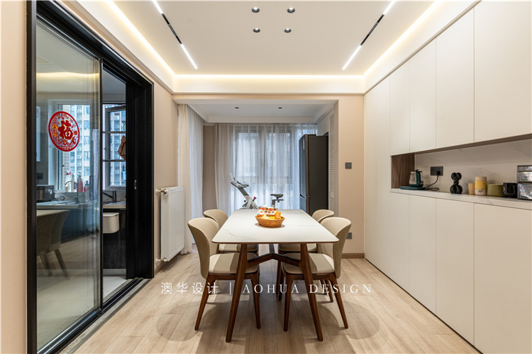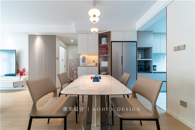 在【世茂錦繡長江】這個項目中,就將冰箱完全嵌入餐邊柜,一體式設計簡約又高級。