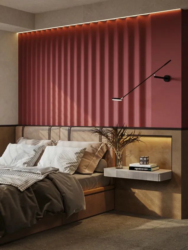 懸浮床頭柜與懸浮梳妝臺(tái)搭配,配合綠植、鏡面,再擺上心愛(ài)的物件,簡(jiǎn)單個(gè)性的床頭功能與美感齊聚。