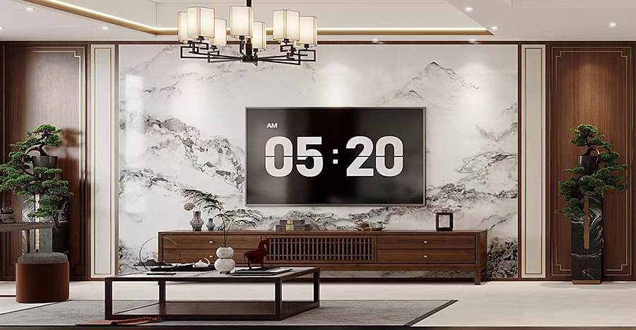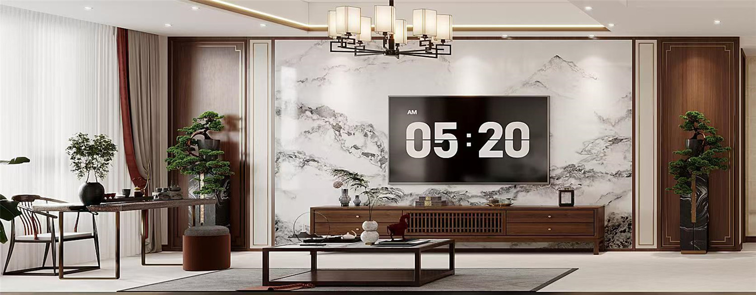 幾何掛畫簡約而又充滿現代藝術感,搭配上黑色茶幾,為空間增添摩登風情。