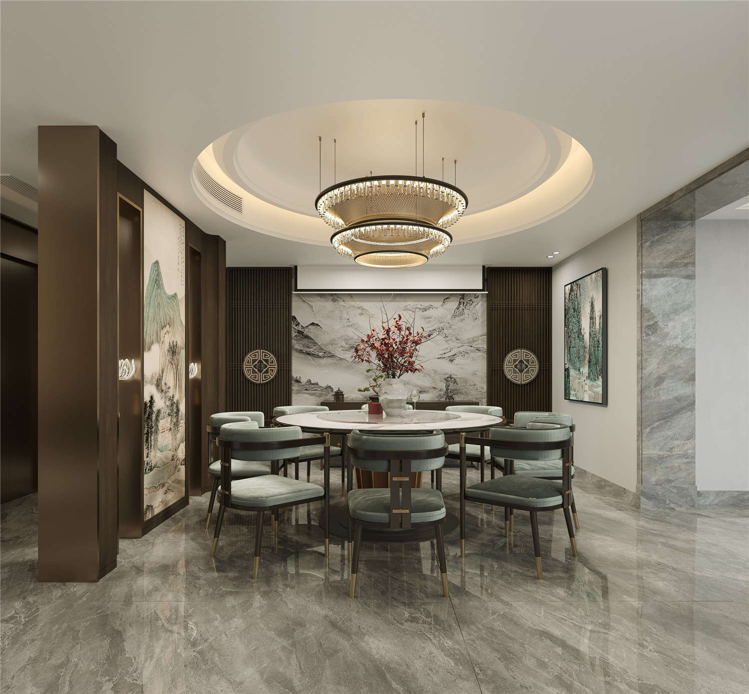 淡藍色的墻面為就餐區(qū)域增添了一抹清新明麗的氛圍,而造型優(yōu)雅的餐座椅則讓整個就餐區(qū)域多了一抹精致的浪漫感。