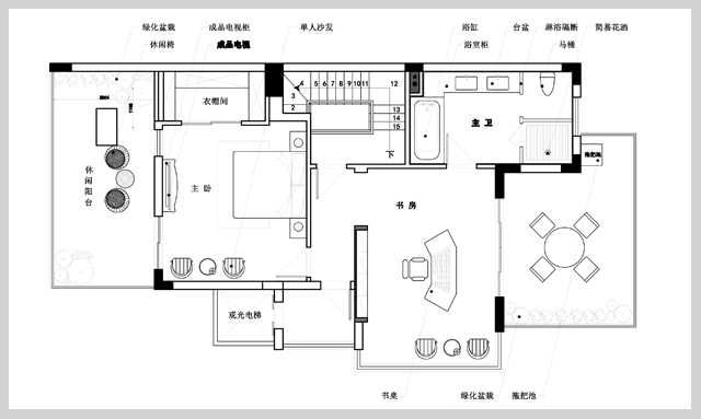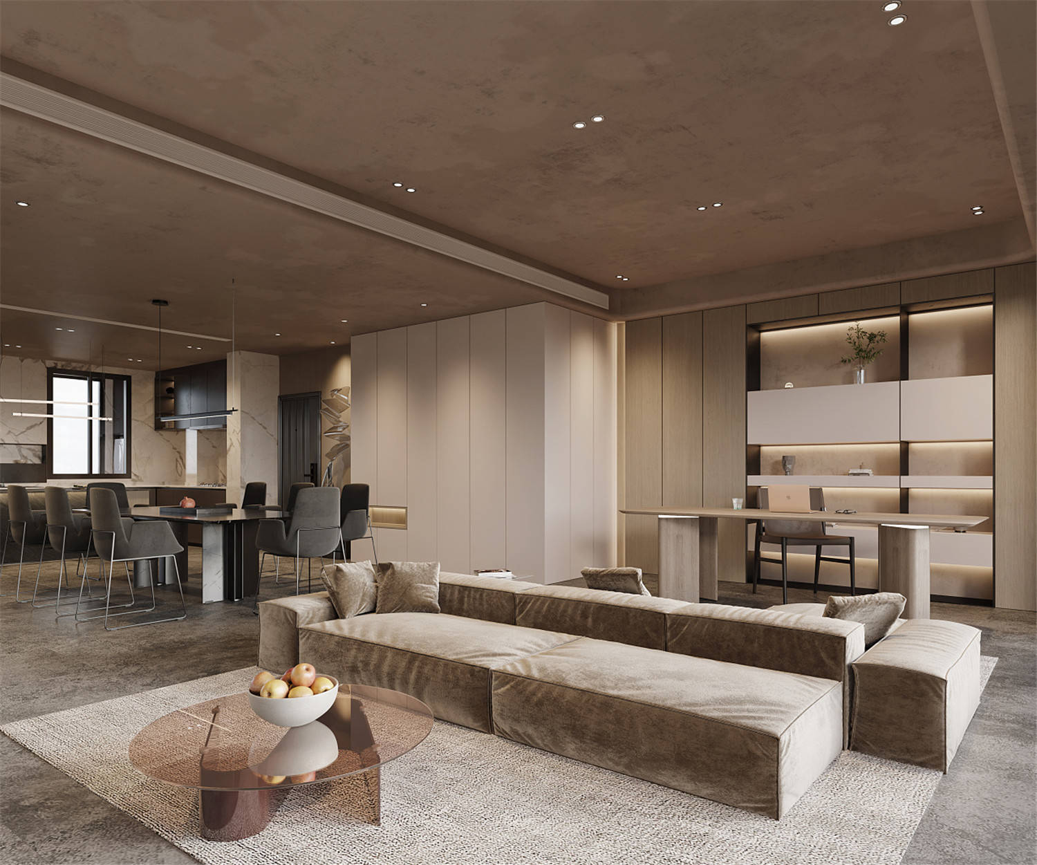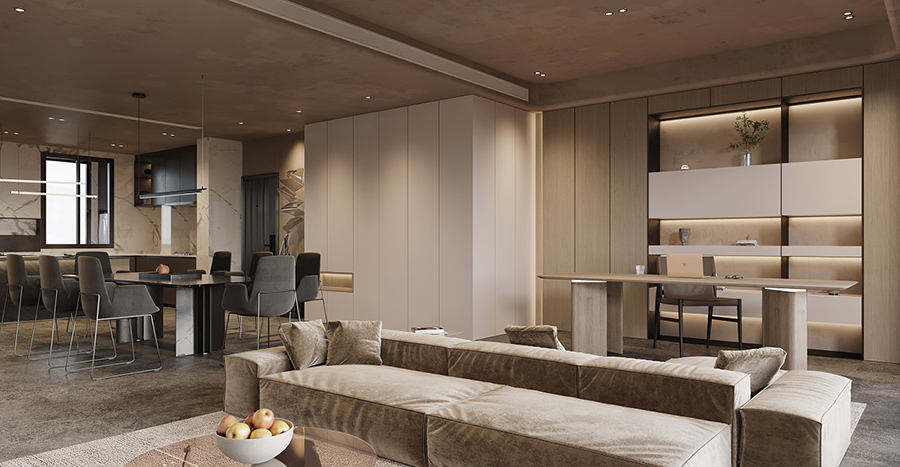該別墅坐落為一位退休老人所有,坐落于相對(duì)比較成熟的商圈地段中。而業(yè)主希望設(shè)計(jì)師能夠?qū)e墅空間進(jìn)行合理的規(guī)劃設(shè)計(jì),在滿足自己與家人使用需求的前提下,追求一份靜謐、舒適的自然氣息,以便自己頤養(yǎng)天年。因此設(shè)計(jì)師在對(duì)該空間進(jìn)行規(guī)劃設(shè)計(jì)的時(shí)候,以退休老人及其家人的需求為主設(shè)計(jì)思路,根據(jù)起居需求打造了書房、停車間等區(qū)域,以提升生活品質(zhì)。