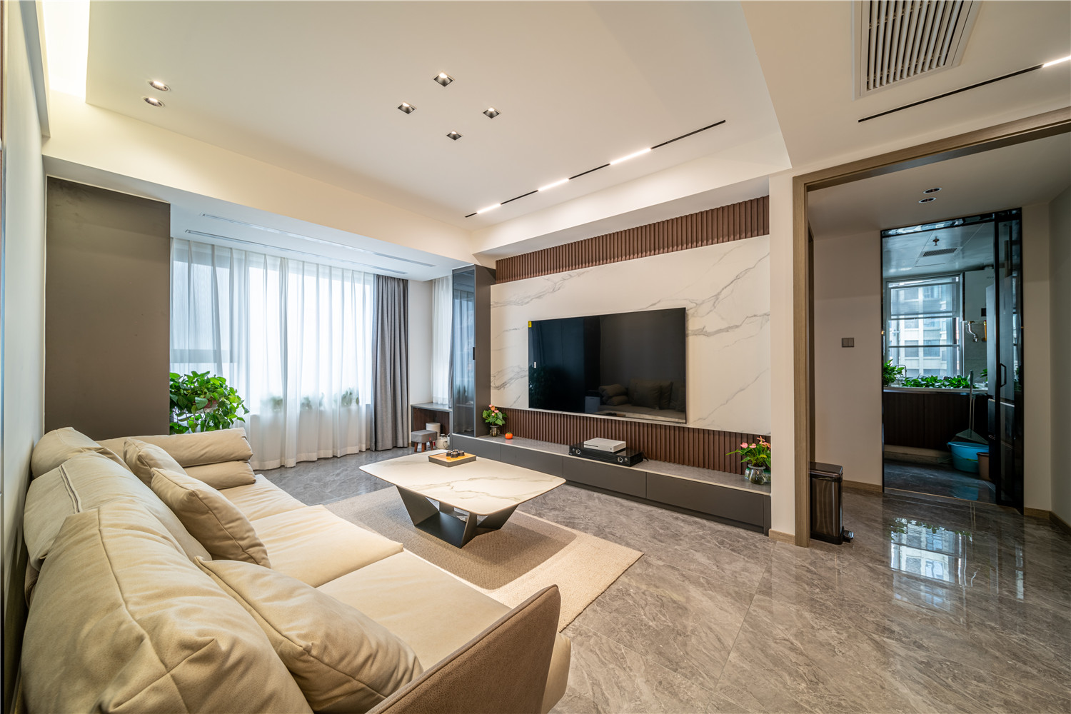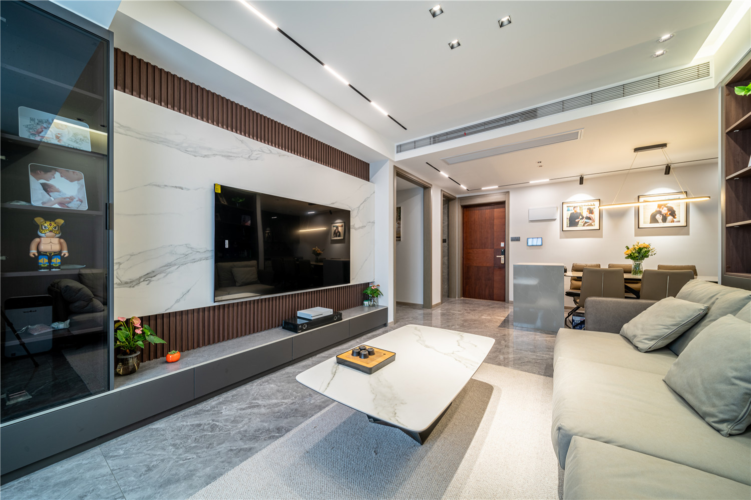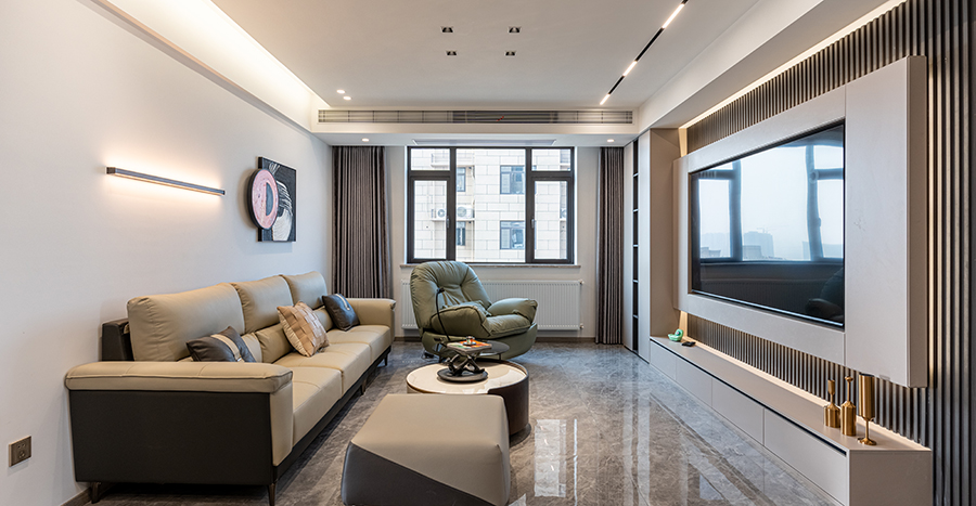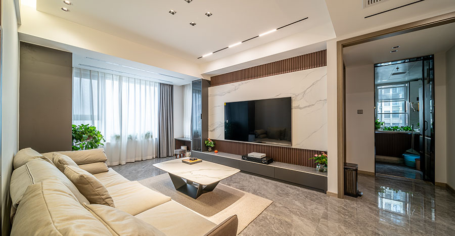 帶有灰色暗紋處理的大理石墻壁簡約而又不失高級感,在無形中提升家居品質感。