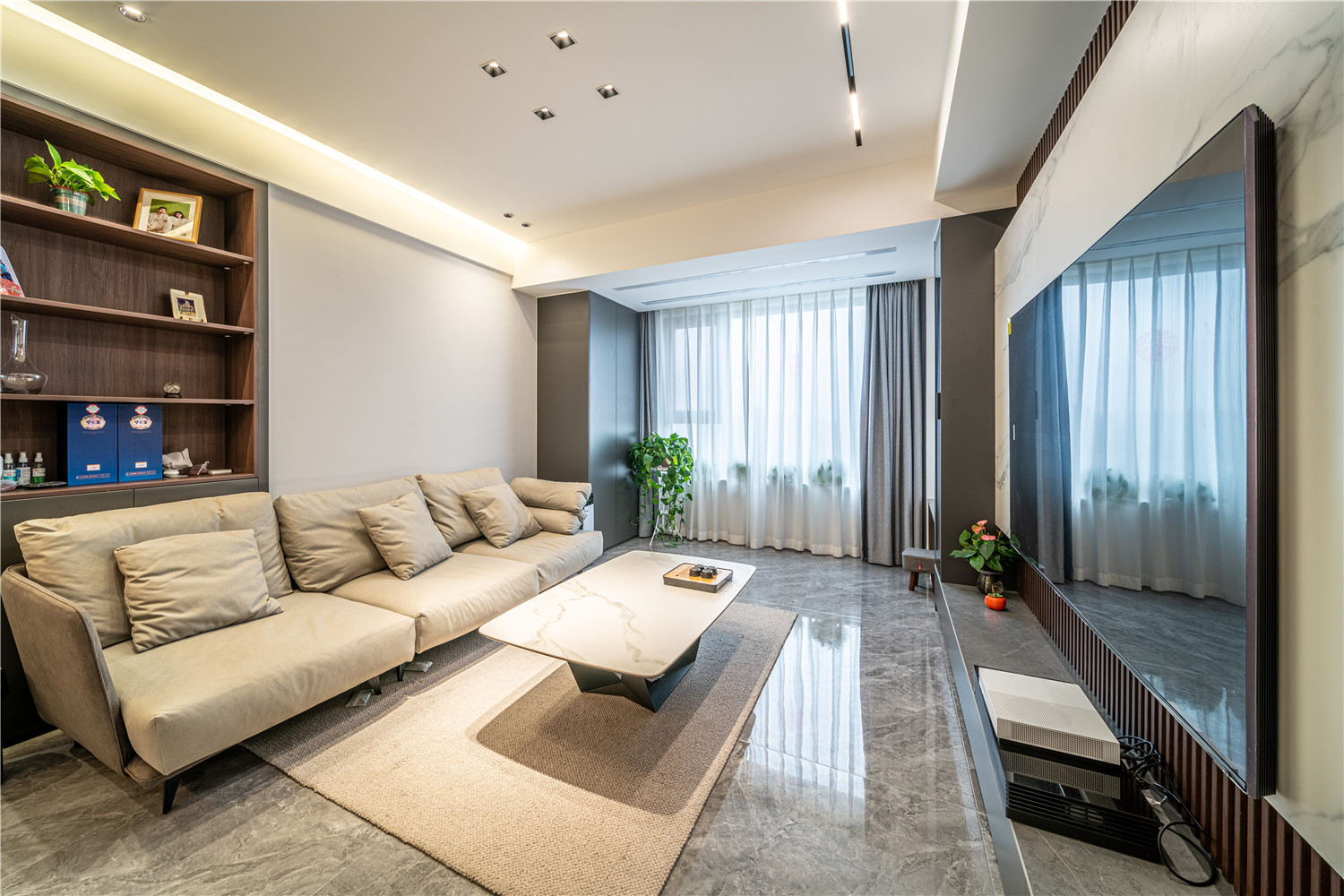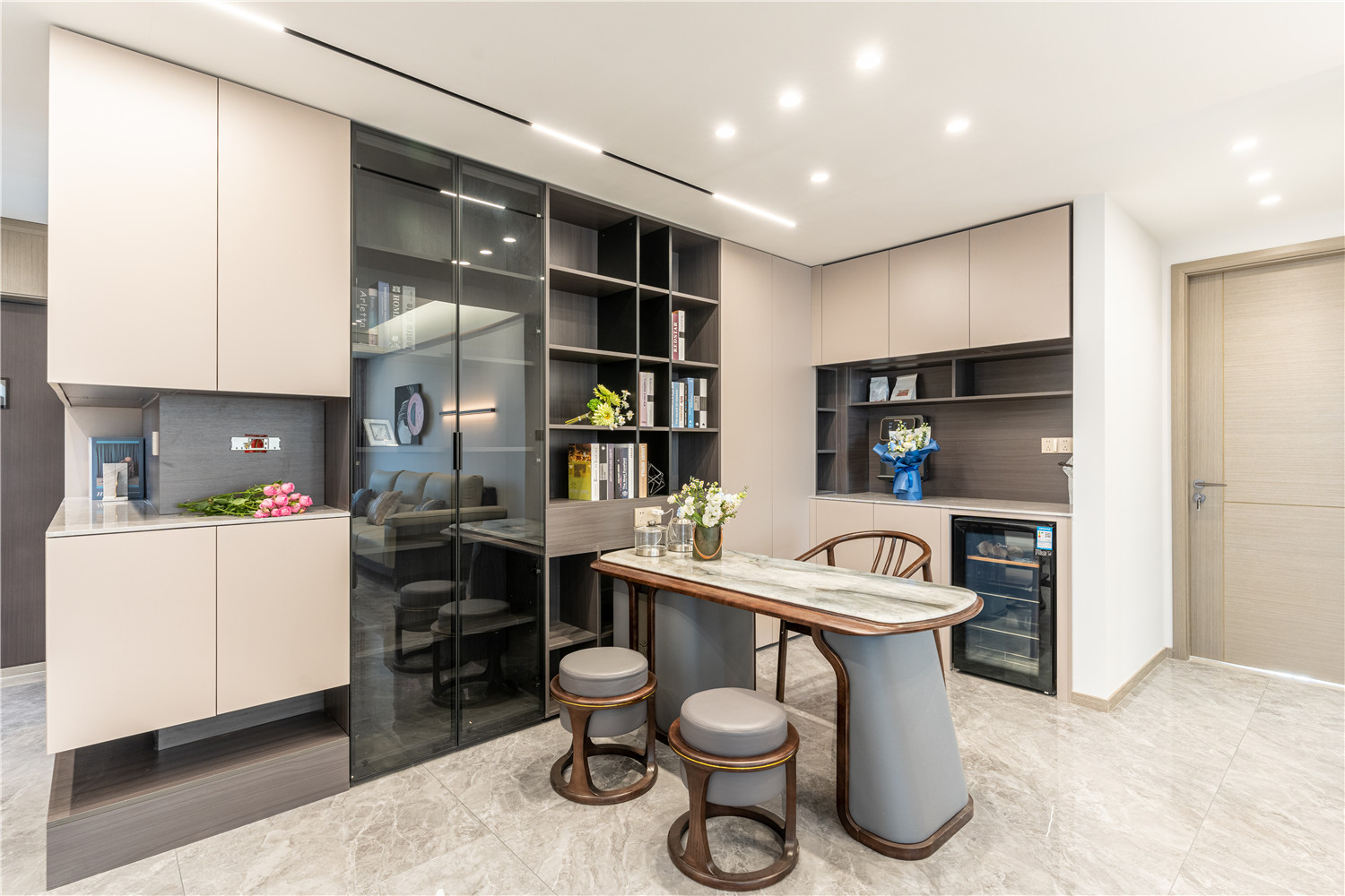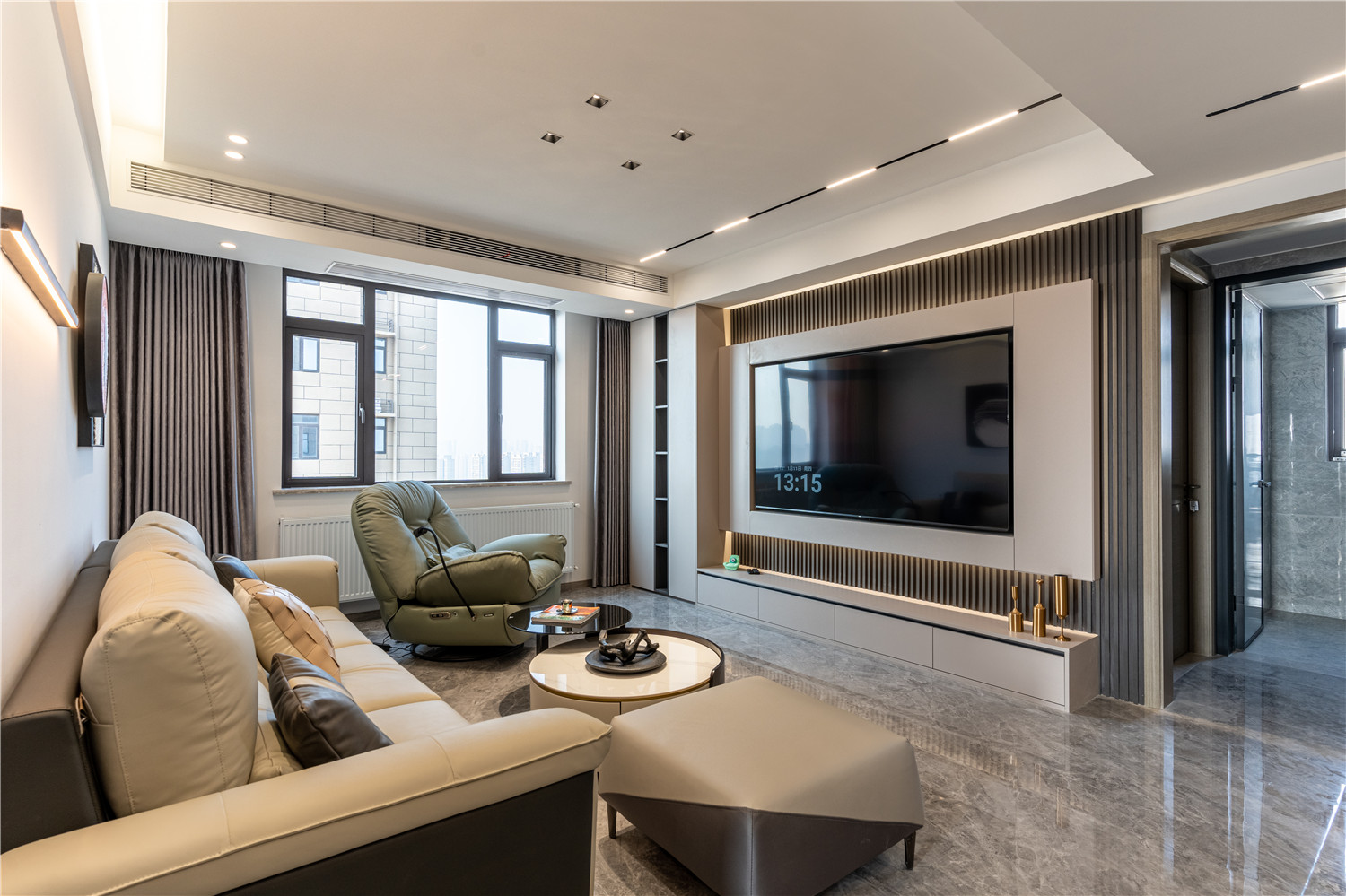 帶有灰色暗紋處理的大理石墻壁簡約而又不失高級感,在無形中提升家居品質感。