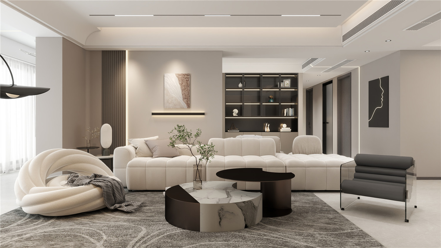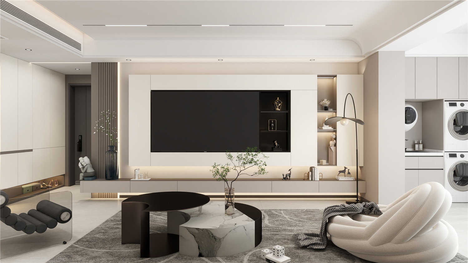 大面積的白色裝飾空間,營造潔凈氛圍,簡單的黑色點綴則打破空間沉悶氣息。