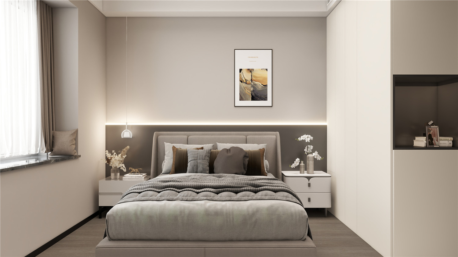 灰色墻面搭配上線條裝飾,簡約而又不失藝術高級感。