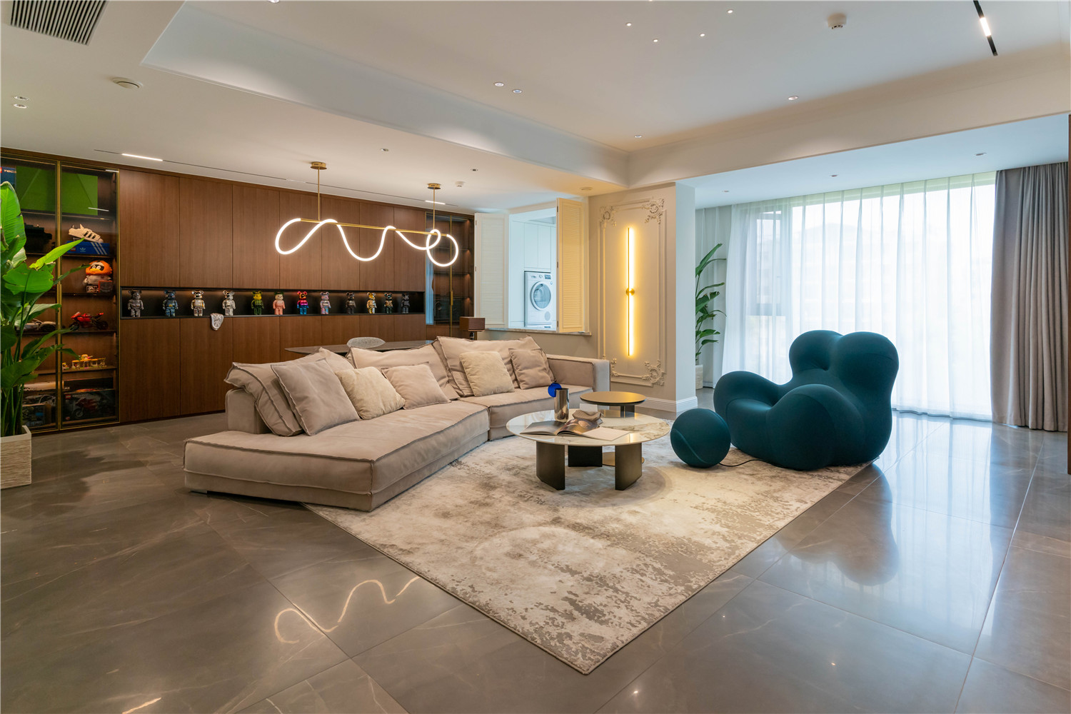 案例介紹:220㎡的四房大戶型采用現代輕奢風格設計,大氣雅致,歷久彌新。業主是一個多子家庭,喜愛具有女王氣場的咖色系輕奢風,希望設計師為百變空間塑造優雅基調,注入品質與時尚,呈現出令人回味,倍顯精致的獨特魅力。