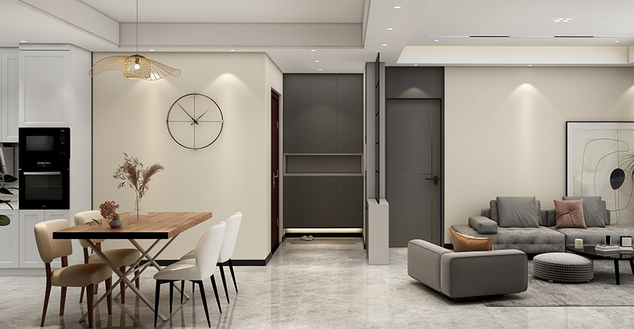 這所彭彬東湖壹號的四居室房屋面積為196㎡,空間不算小,且空間原始結構的缺陷相對比較少,因此設計師沒有對格局進行過多改動,在保留原有戶型結構的基礎上進行了合理的裝飾設計。由于過道處空間相對比較狹小且距離較長,設計師在對該區域進行設計的時候就利用了色彩的搭配以及裝飾元素的點綴,來提升該空間的美觀度與大氣感。