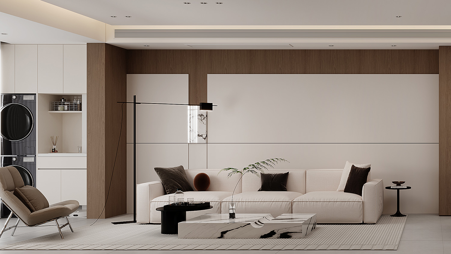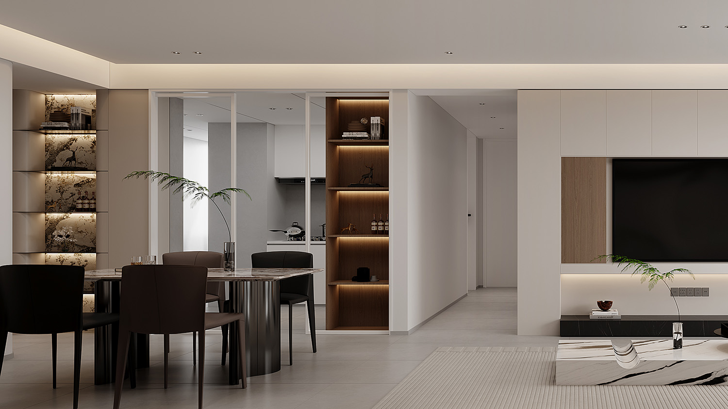 案例簡介:本案的男主是上市企業精英,長期在異地工作多年,歸來后第一件著手做的事情就是裝飾房子,他期待新家能夠給自己及家人帶來寧靜、沉穩的氣息,且更具歸屬感。設計師根據業主的個人品味、工作以及生活習慣選擇使用現代簡約風進行空間裝飾,而設計師在進行設計除了滿足居住者需求,更希望透過設計來鼓勵居住者參與空間,且成為被使用者珍視善待的空間,在日積月累中展現有機性,育成自身的生命力,才會讓家更具歸屬感。