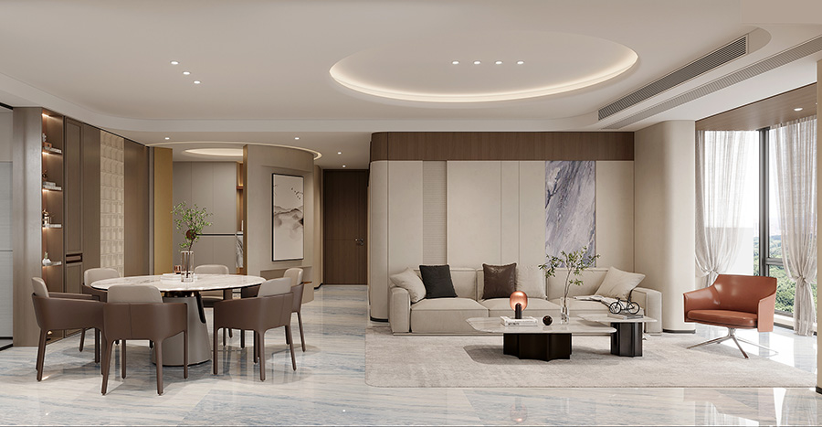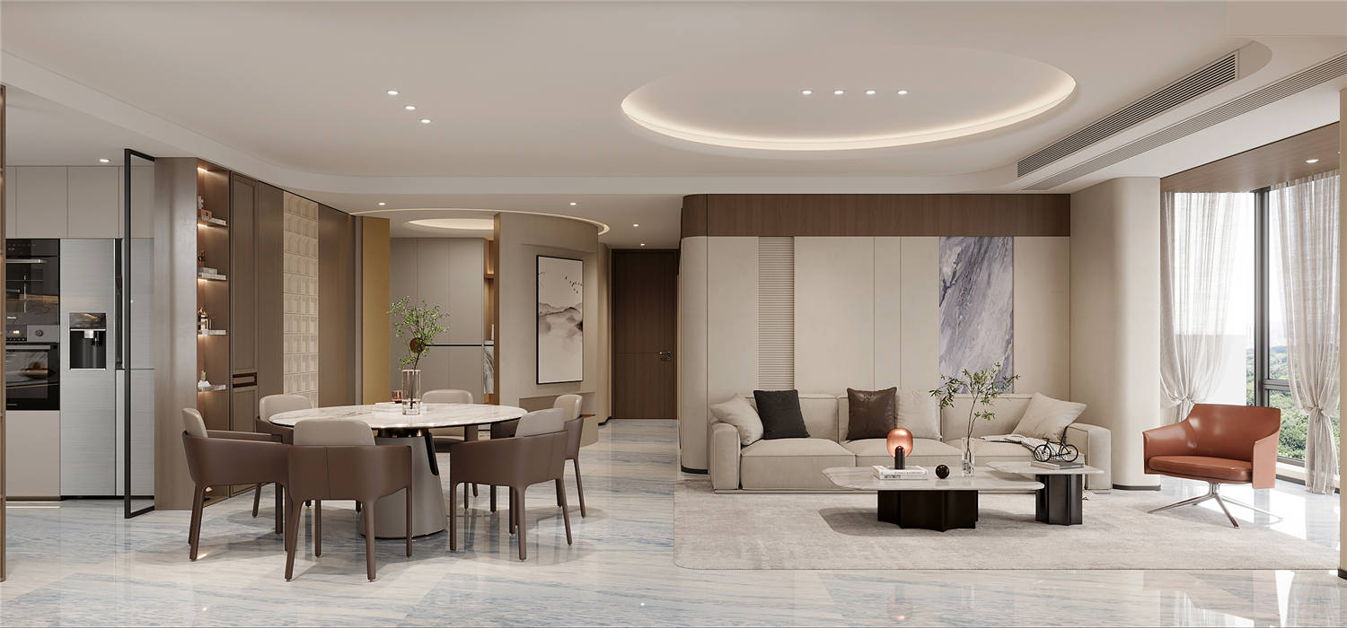 案例簡介:本案從空間布局、線條的統一、塊面的組合、材質的運用、家具比例間的明確合理化與空間美學因素的考量等,讓經典的輕奢與現代的元素完美的結合,全方位呈現空間的品質。經過簡化的輕奢風格,以還原現代生活空間為出發點,每個功能區都自然地散發著一種尊貴而又和諧的氣質,精致完善的細節全部隱匿于空間之中。當生活的品味不再是表面的包裝,內斂婉約的奢華更讓人玩味無盡!