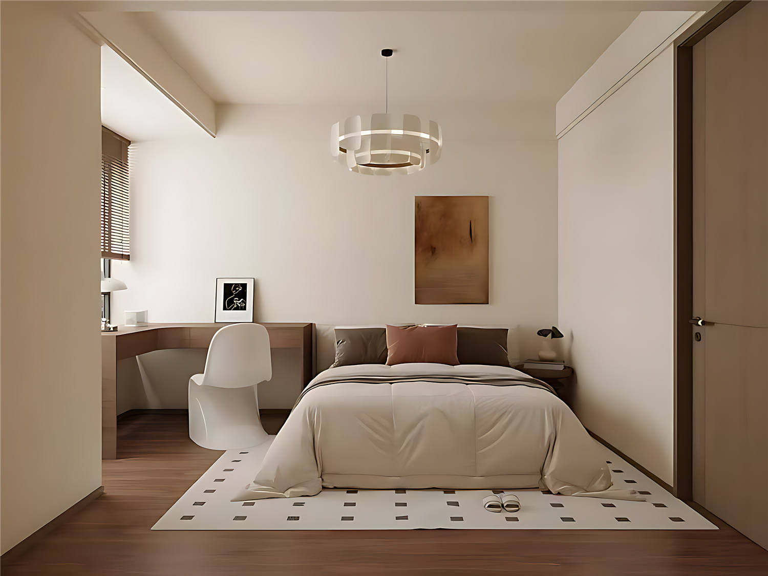 大華鉑金瑞府這套三居室的住宅占地面積只有98㎡,整體戶型偏小,不過好在整體結構相對比較規整且沒有難以設計的犄角空間,因此設計師只需要在原有的結構基礎上進行調整以及軟裝設計即可。為了提升空間的利用率,主臥的飄窗改造成一個迷你的休憩空間,搭配上抱枕滿足日常觀景需求。