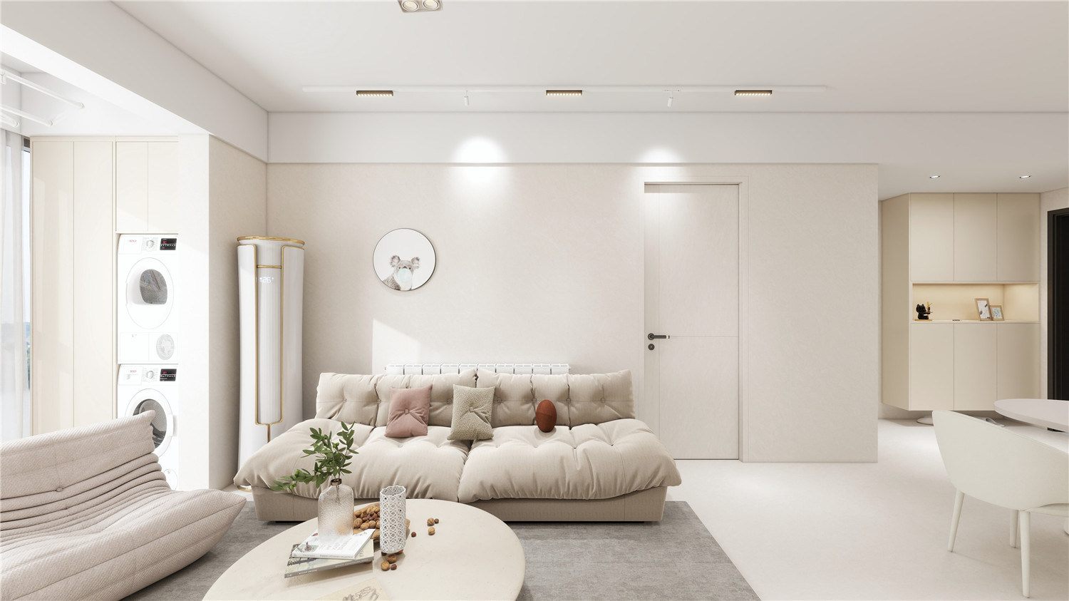 為緩解進門見廳的尷尬局面,玄關處設計了實體半隔斷,掛畫裝飾后觀感非常棒;玄關柜采用嵌入式設計,立面干凈,為玄關空間贏出更多活動空間。