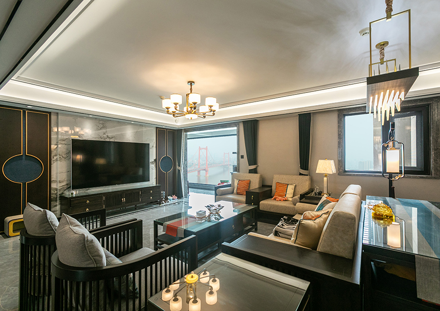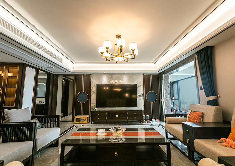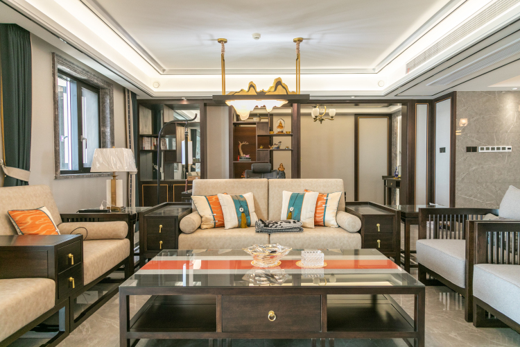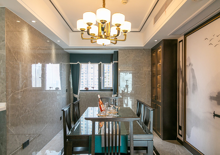 案例簡介:本案例的業(yè)主作為一個教師,對于傳統(tǒng)的中國文化有著濃厚的興趣,因此在與設計師交流的時候強烈的表達了自己對中式元素的喜愛。因此在本案例設計過程中,設計師為業(yè)主選用了經(jīng)典的新中式風,同時借助各類質(zhì)感元素的雜糅使用,演繹了一個復古而又不失摩登時尚氛圍的輕奢雅苑。簡約的線條、傳統(tǒng)的中式復古元素,讓家居空間呈現(xiàn)出豐富的層次與藝術(shù)的格調(diào)。