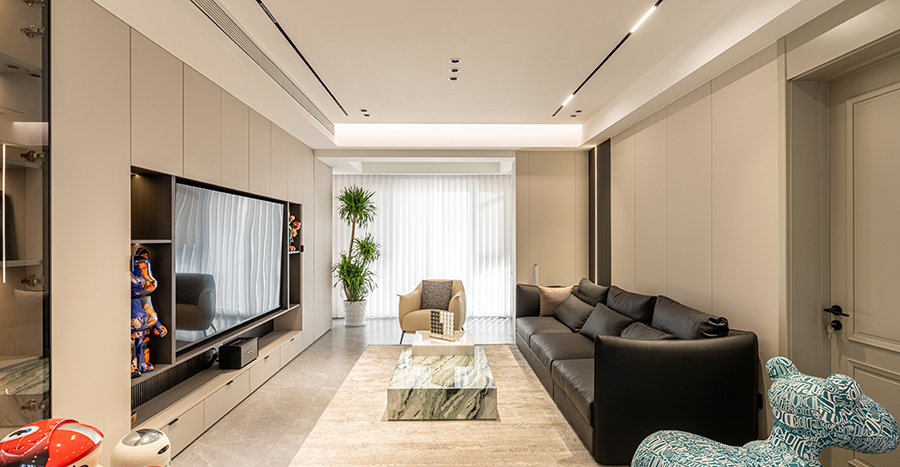 這套位于金悅天地的三居室住宅面積約為140㎡,業(yè)主對房屋原有的戶型結(jié)構(gòu)比較滿意,因此設計師在對房屋進行規(guī)劃設計時保留了房屋的原有結(jié)構(gòu),同時借助不同類型的隔斷讓各個功能空間分區(qū)更加明確,讓整個房屋戶型呈現(xiàn)出更加簡潔舒適、干凈利落的狀態(tài)。再搭配以清新色彩、個性化裝飾,讓家居空間能夠更具趣味感與精致感。