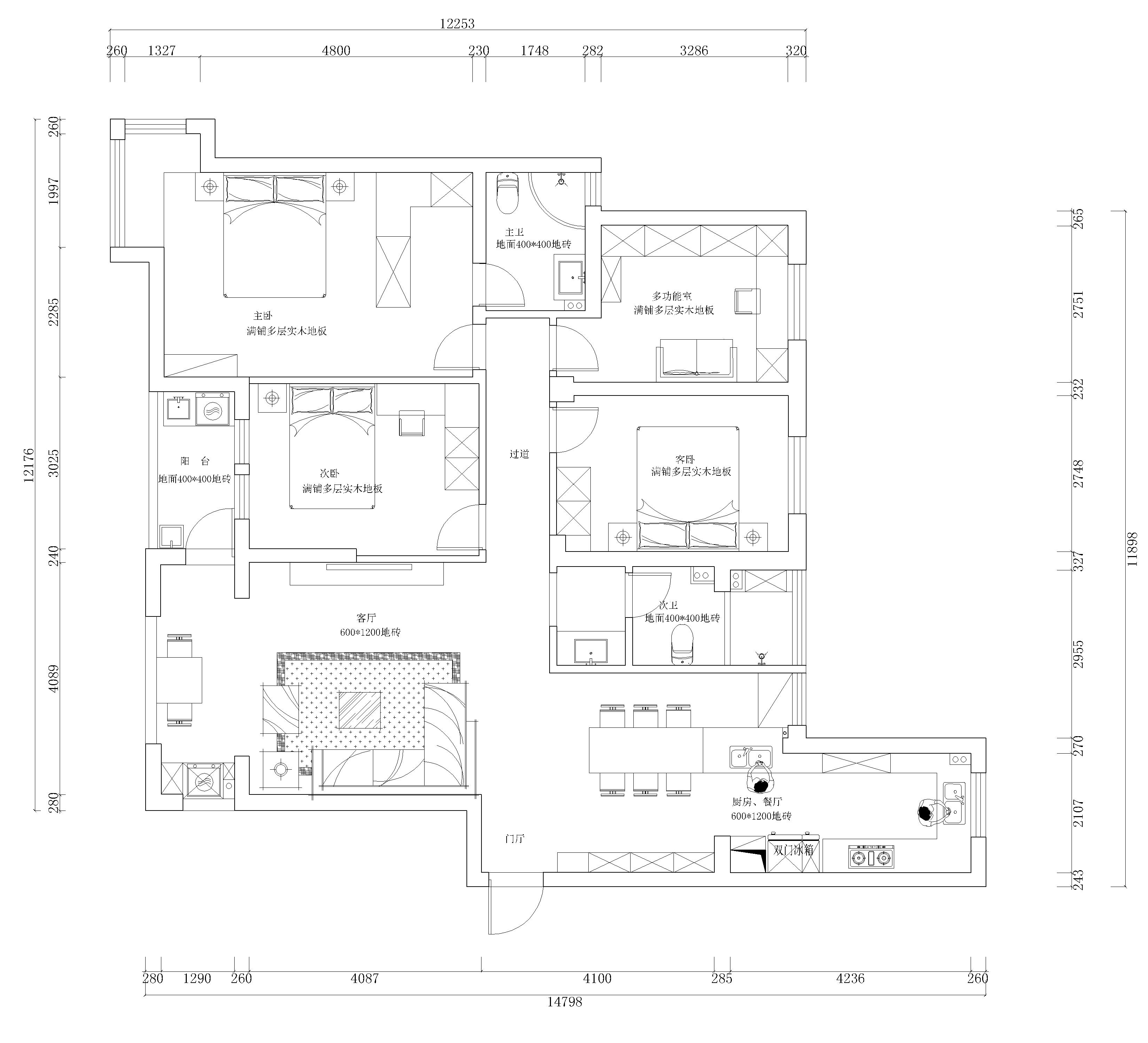 案例簡介:在設計整體選材上選用質感的材料——全拋釉地磚、多層地板、白色木門、墻面墻布,材質間相互融合對比以彰顯整體空間的貴氣感,更加滿足其人文的功能需求,在布局上把空間合理化,讓空間成為了設計的主導;設計重視簡潔,讓整體更加和諧、溫暖舒適,讓業主在安靜、遐想的空間小憩,更加關照人的內心世界。