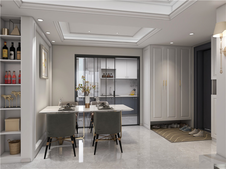 華發外灘首府的這套180㎡的四居室住宅原有的戶型結構符合業主一家人的起居生活習慣,因此設計師沒有對戶型進行過多的改動。而為了滿足家庭孩子們的閱讀、學習需求,設計師將房屋中原本的次臥改造成一個迷你小書房。而走廊過道處則減少各種花里胡哨的設計,強調簡潔,以便于后續生活的清潔打掃。