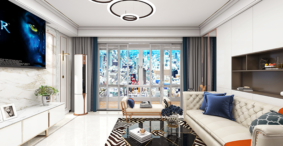 大面積的白色強調了一種清新悠然的典雅美,金色的線條處理則為空間平添一抹高級品質感。