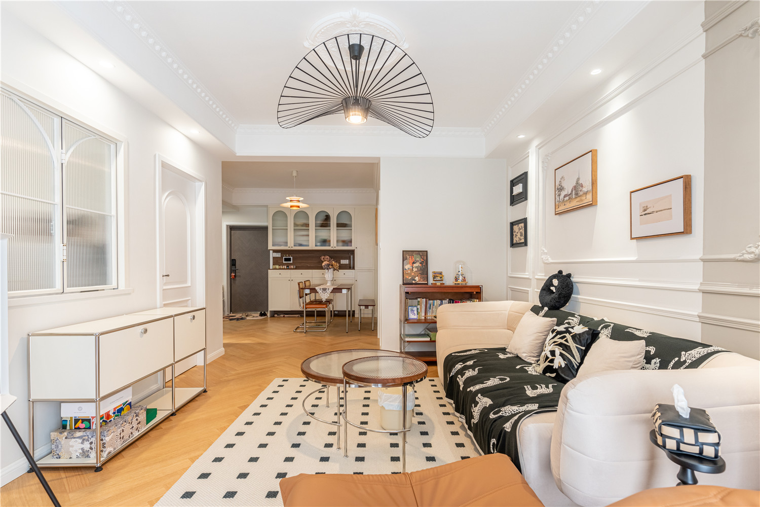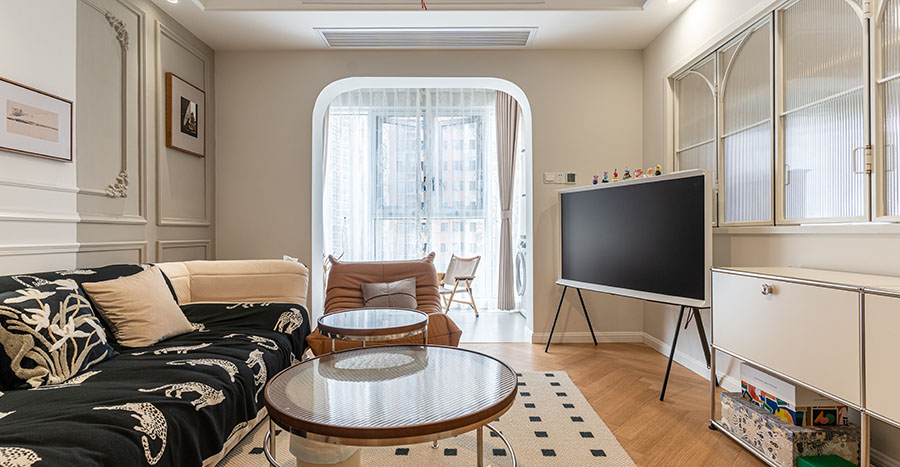 省醫(yī)保宿舍這套三居室的住宅面積只有90㎡,整體戶型面積并不大,不過(guò)好在空間結(jié)構(gòu)合理且整體戶型結(jié)構(gòu)規(guī)整,因此只需要進(jìn)行合理的軟裝與空間規(guī)劃即可滿足兩個(gè)年輕姑娘的起居使用需求與審美需求。設(shè)計(jì)師按照業(yè)主的喜好選擇了典雅而又不失自由浪漫氣息的美式風(fēng)進(jìn)行軟裝,強(qiáng)調(diào)空間的清新感。同時(shí),為了滿足業(yè)主在家辦公、閱讀的需求,將其中一個(gè)小面積次臥改造成書房。
