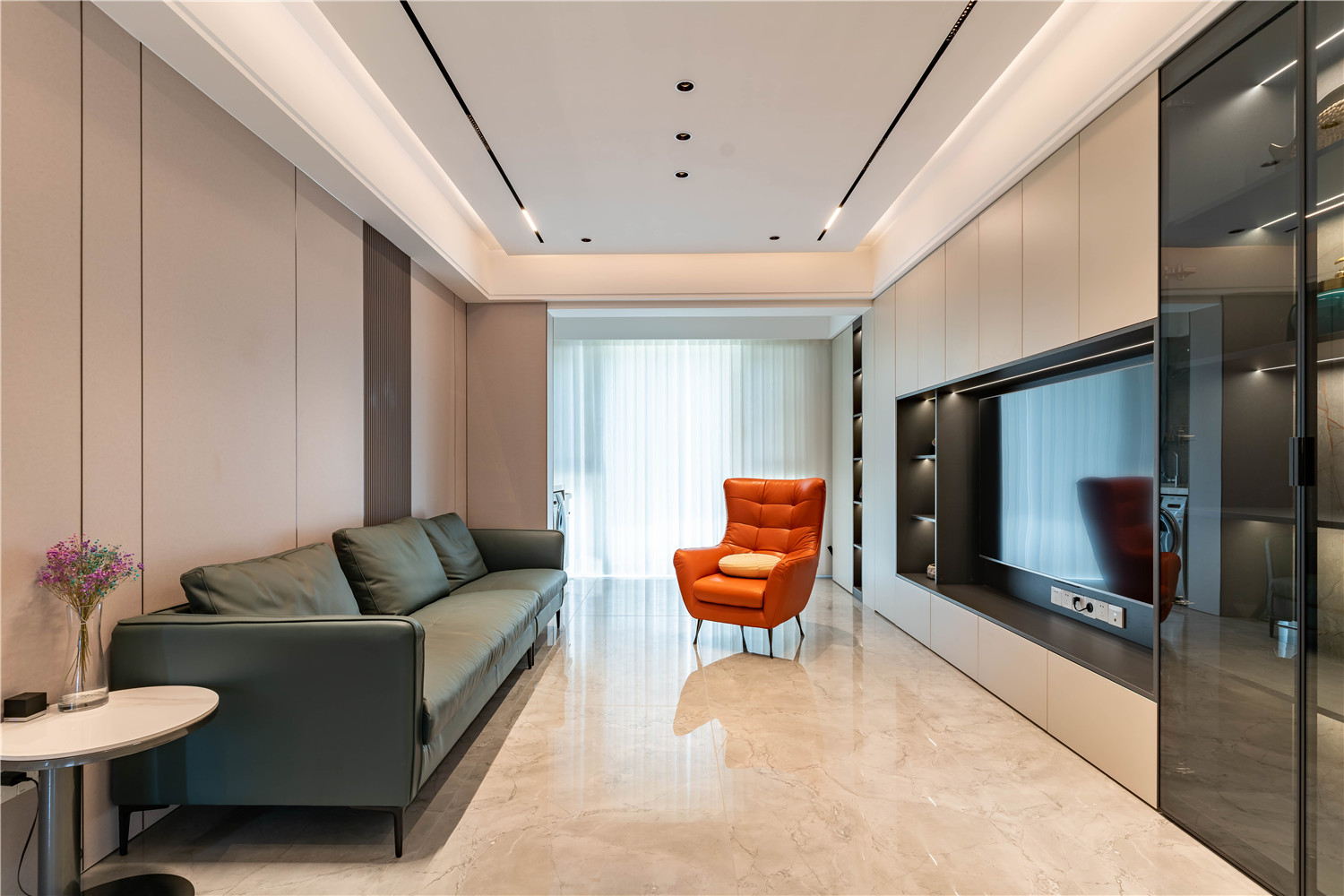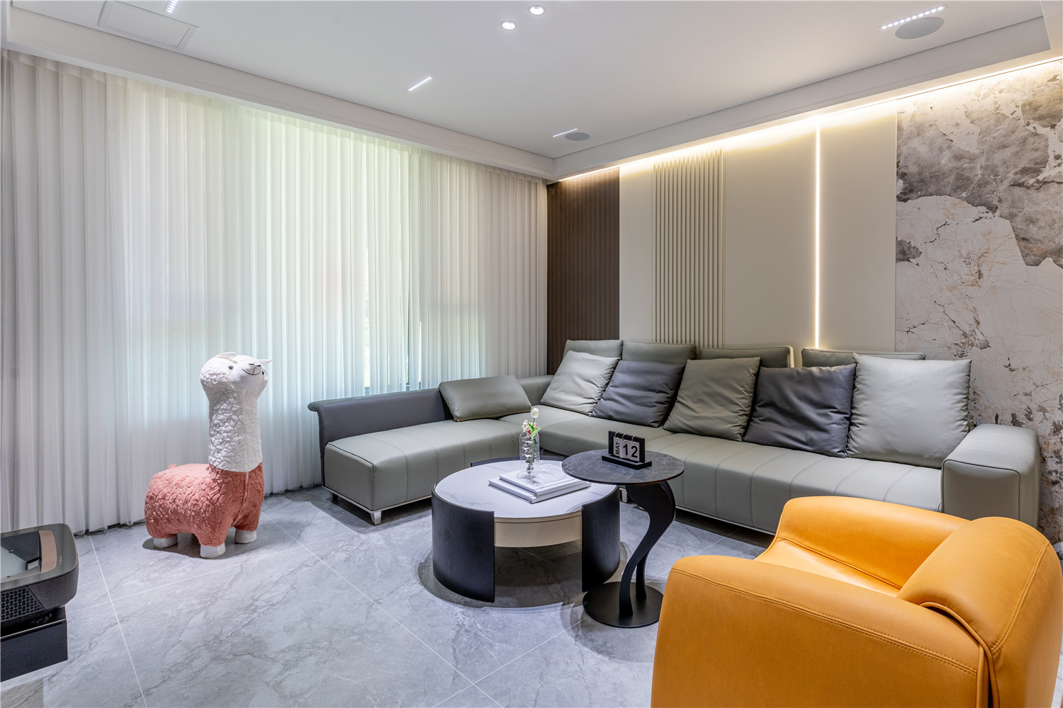 大理石電視背景墻既可以起到裝飾點綴客廳的作用,又將客廳與外部空間進行軟隔斷,有效提升空間的界限感。