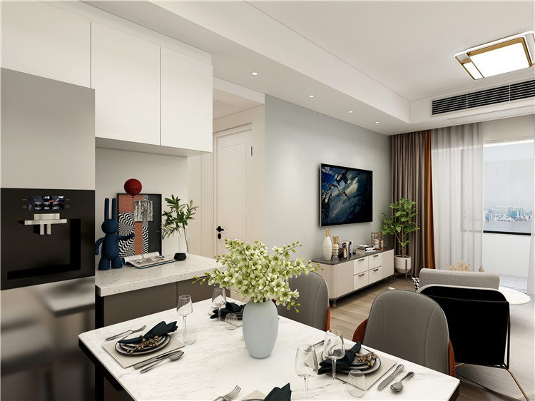 案例簡介:本案例的業(yè)主是一對(duì)年輕的90后夫妻,家中的常住人口除了夫妻二人之外還有一個(gè)剛上小學(xué)的孩子,偶爾父母也會(huì)過來探望。因此設(shè)計(jì)師在進(jìn)行規(guī)劃設(shè)計(jì)的時(shí)候,優(yōu)先考慮業(yè)主夫婦與孩子的起居使用需求,同時(shí)為業(yè)主選擇了簡約時(shí)尚風(fēng)進(jìn)行裝飾,借助各類現(xiàn)代化的元素打造出一個(gè)時(shí)尚而又不失品味的高級(jí)家居。