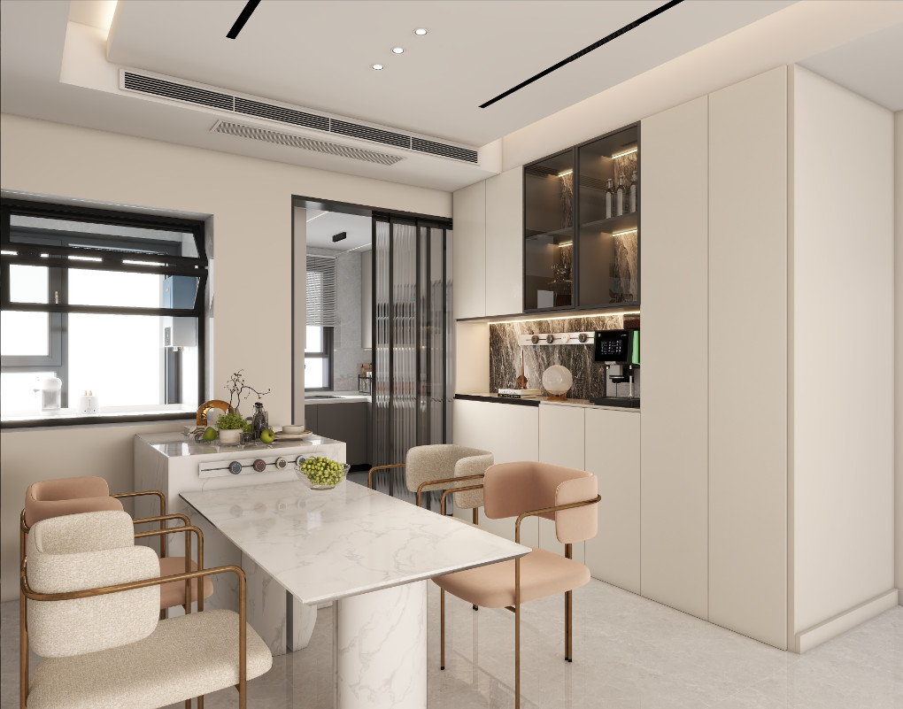 同鑫花園這套159㎡的三居室房屋整個(gè)的戶型結(jié)構(gòu)并不規(guī)整,但也相對(duì)比較常見,整體呈現(xiàn)“L”形,因此需要設(shè)計(jì)師更加合理的進(jìn)行空間規(guī)劃,避免由于戶型結(jié)構(gòu)不夠規(guī)整帶來的壓抑感與局限感。根據(jù)業(yè)主的需求,設(shè)計(jì)師將主臥外部空間與主臥區(qū)域直接打通,并改造成一個(gè)臥室內(nèi)的衛(wèi)浴空間,提升主人日常洗漱的便利性。而為了滿足業(yè)主的閱讀、辦公需求以及老人偶爾過來探望的居住需求,設(shè)計(jì)師將一個(gè)次臥改造成書房,同時(shí)搭配上可收縮式家具,以滿足使用需求。