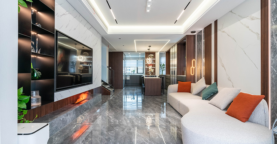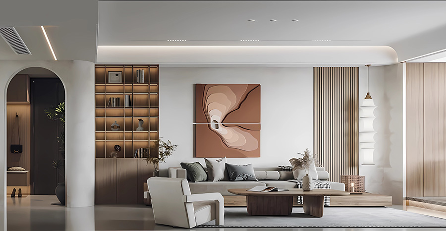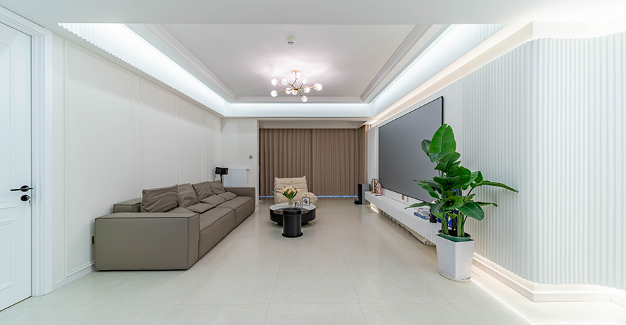 案例簡介:本案例的業主是即將退休的老教師,平時喜歡看書及收集各類書籍,因此對于家的希望是能夠具有足夠的閱讀及書籍收納空間。同時,業主不喜歡各種花里胡哨的設計,崇尚簡約生活,所以在與設計師交流時提出最好不要使用過于艷麗的色彩及過于繁瑣的元素。為了尊重業主的喜好,設計師規劃出兩個獨立的閱讀空間,同時使用現代簡約風裝飾整體空間。