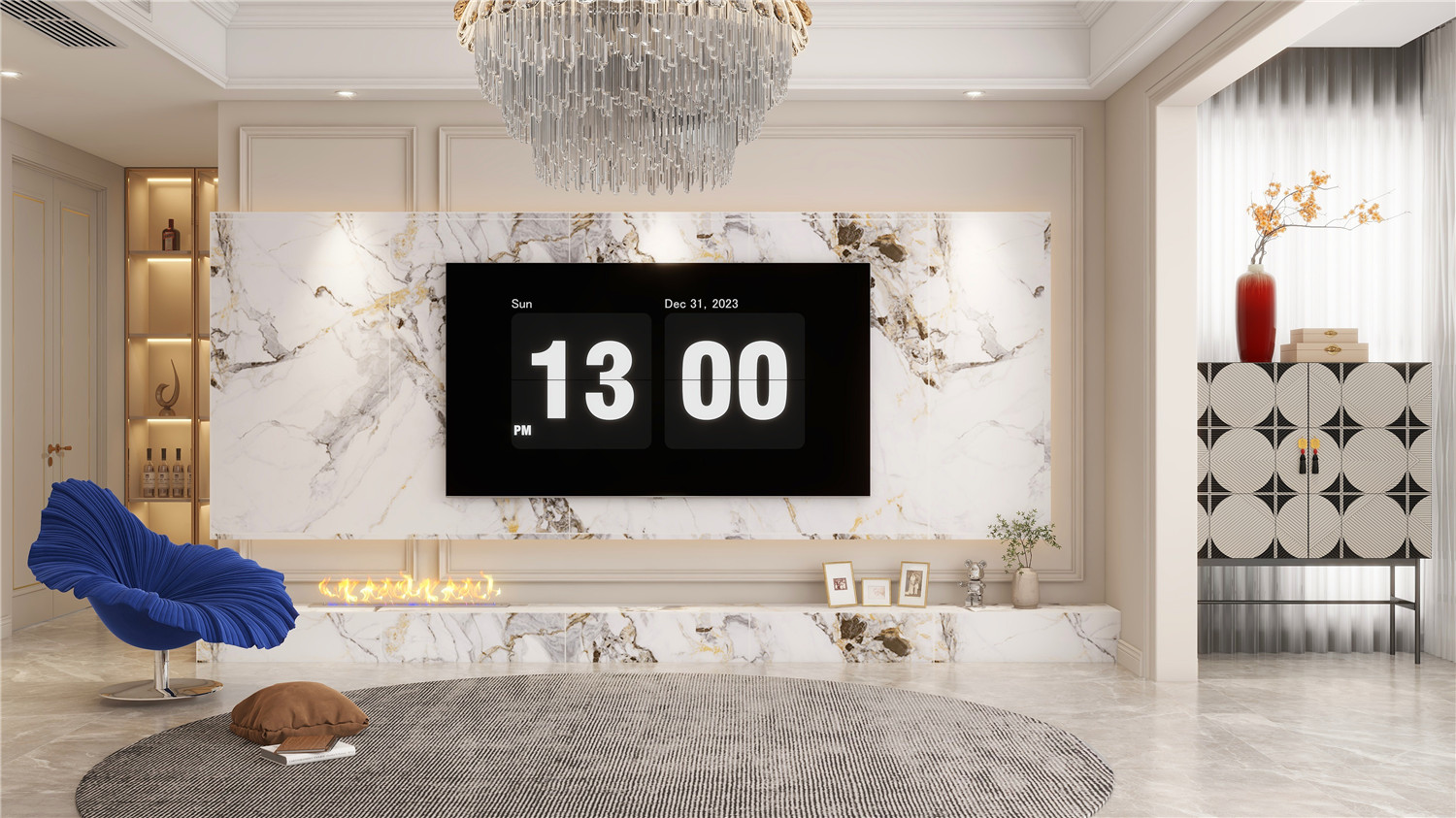 現代布藝沙發和簡約背景墻搭配簡單,白色和灰色的色調搭配感覺很舒適。