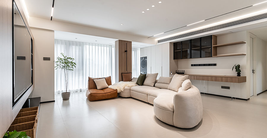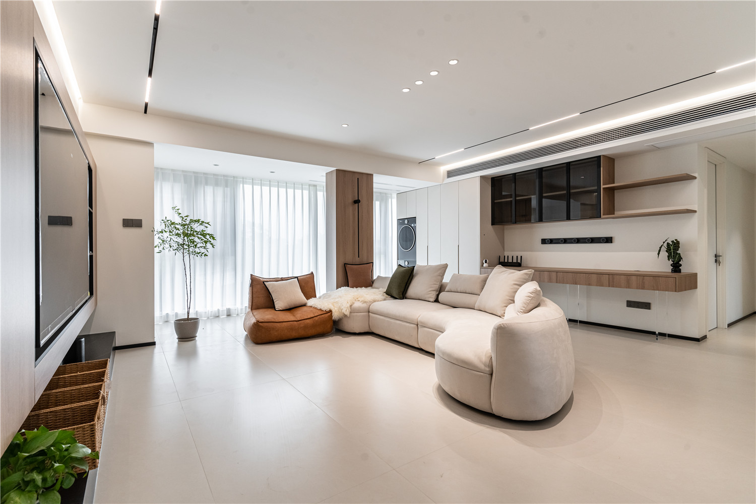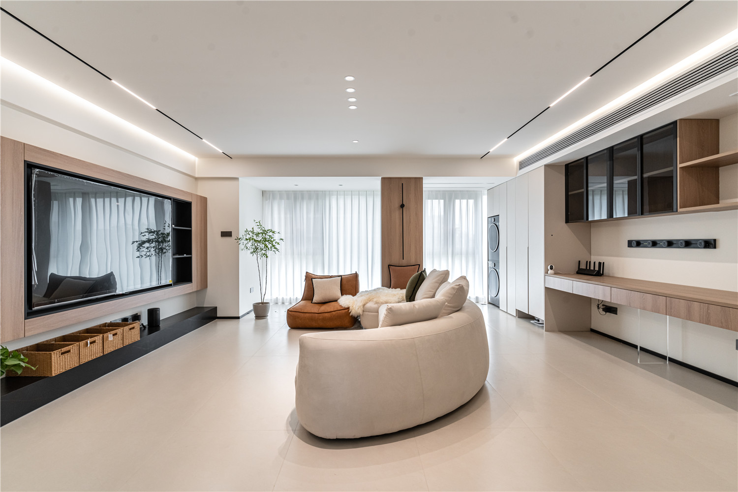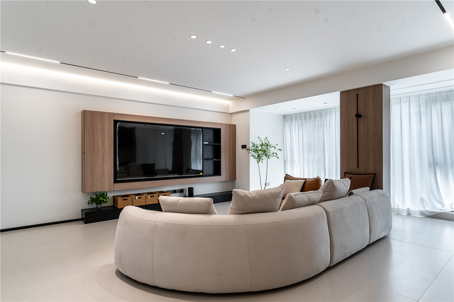 木質(zhì)儲物柜簡約又耐看,無燈具式照明強調(diào)空間清新優(yōu)雅高級感。