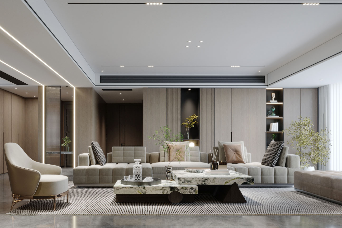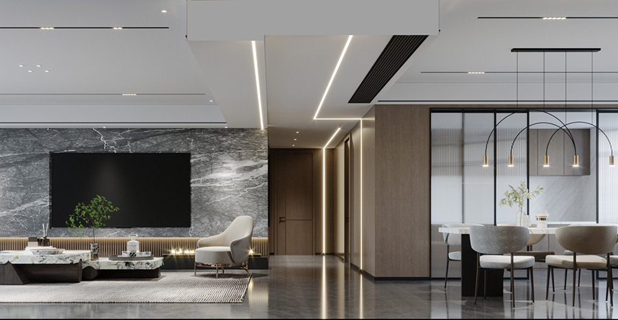 案例簡介:本案例的業(yè)主是一位90后銀行工作職員,對待工作嚴(yán)謹(jǐn)?shù)乃麑τ谏钜餐瑯邮侨绱耍虼嗽谶M行家裝過程中他更重視細(xì)節(jié)的強調(diào),希望能夠通過細(xì)節(jié)強調(diào)空間的品質(zhì)感。設(shè)計師在與業(yè)主進行深入溝通后,為業(yè)主選擇了相對比較強調(diào)質(zhì)感的現(xiàn)代簡約風(fēng),同時借助不同質(zhì)感的材料裝飾空間,強調(diào)細(xì)節(jié)處的高級感。
