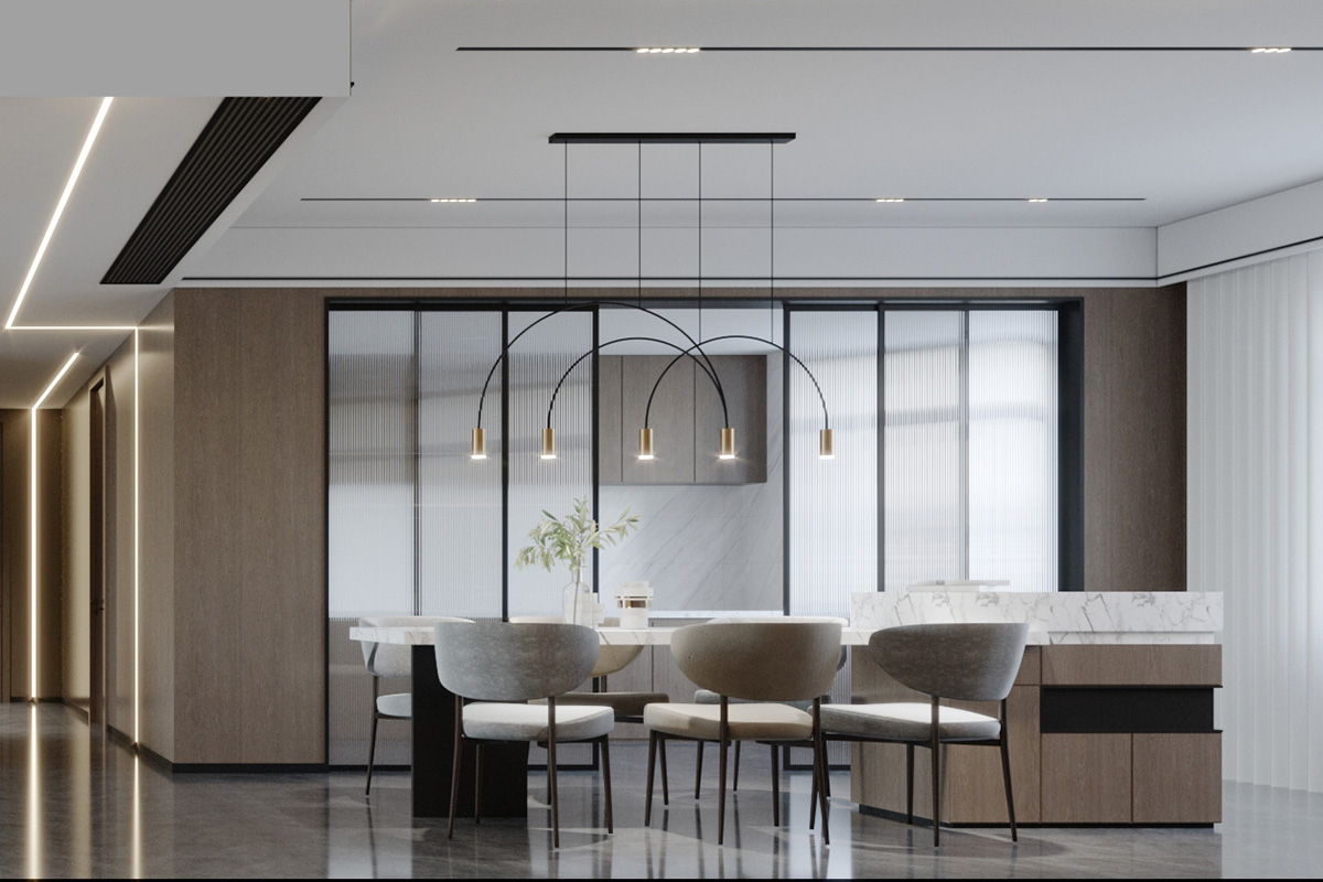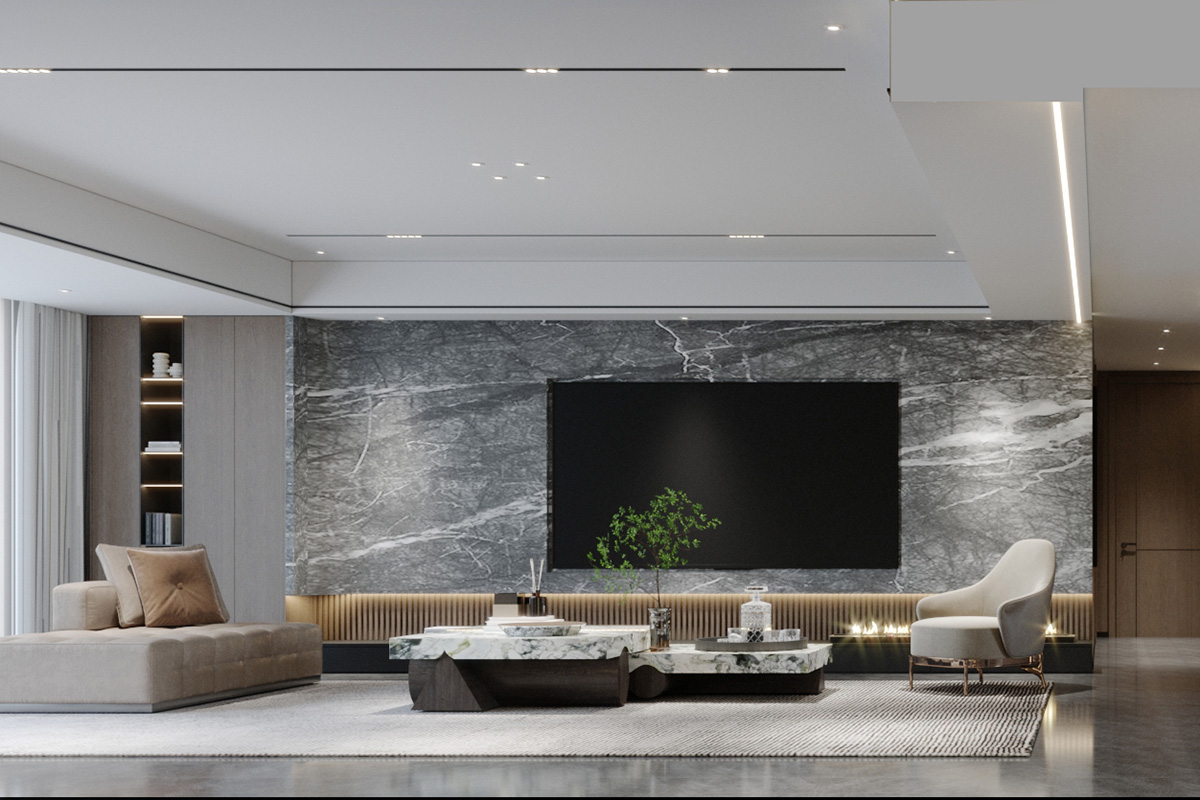 木質(zhì)與大理石材質(zhì)的碰撞讓空間在溫潤舒適中多了一抹優(yōu)雅的高級品質(zhì)感。