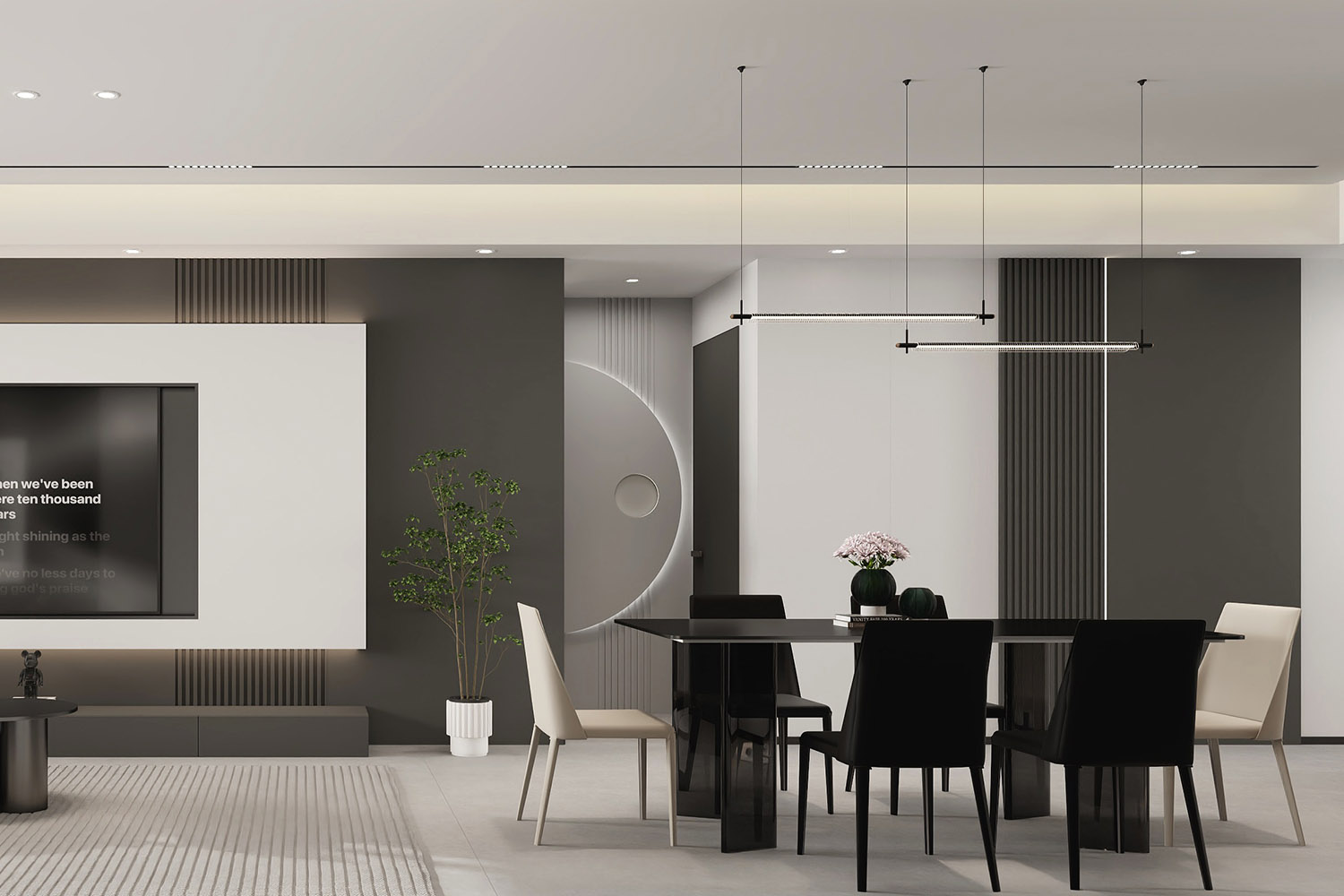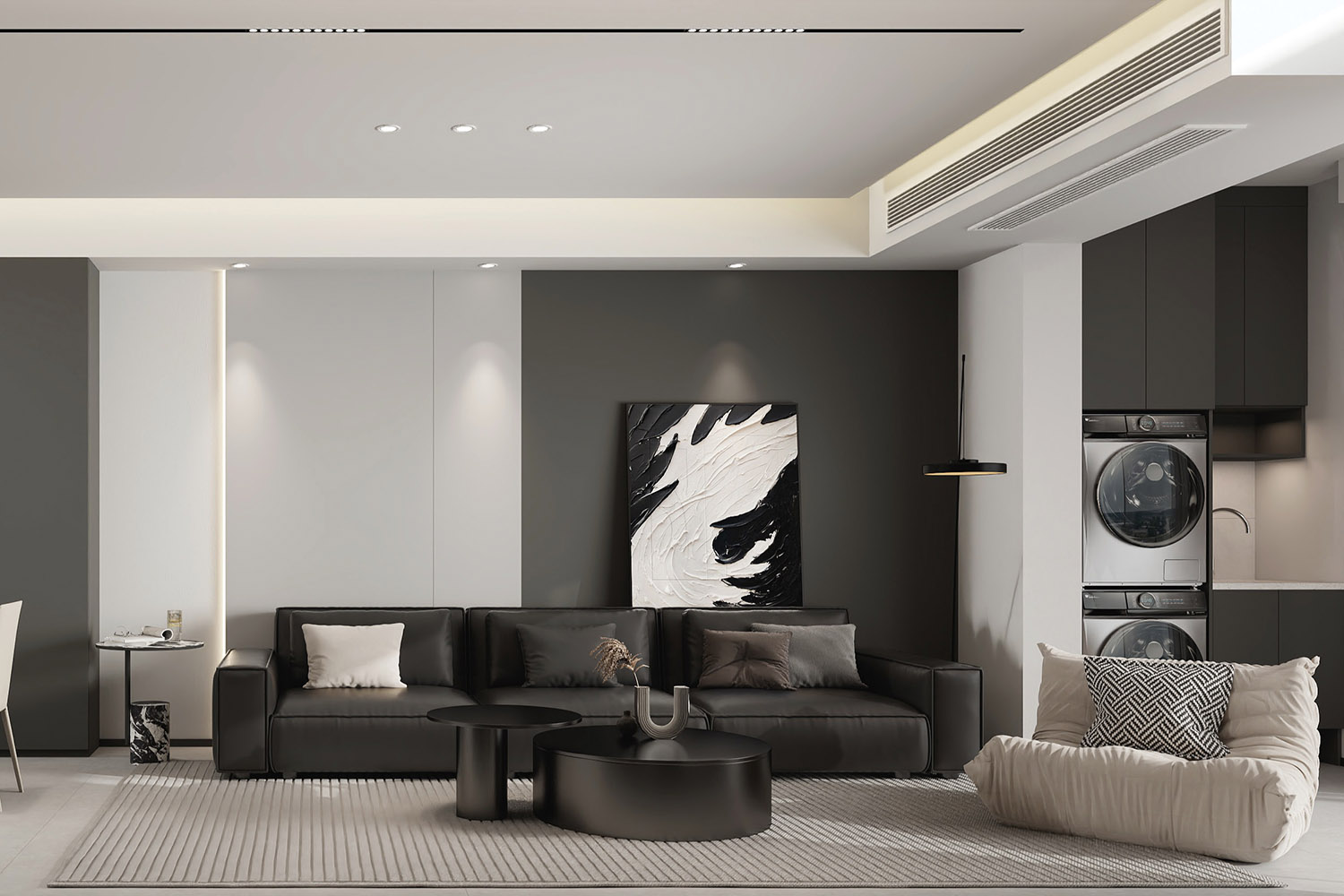 一塵不染素凈澄明。用平靜的心靈看世界,利用淡淡的家具布局把原有的空間凈化,把氣質和品位含蓄地表現出來。