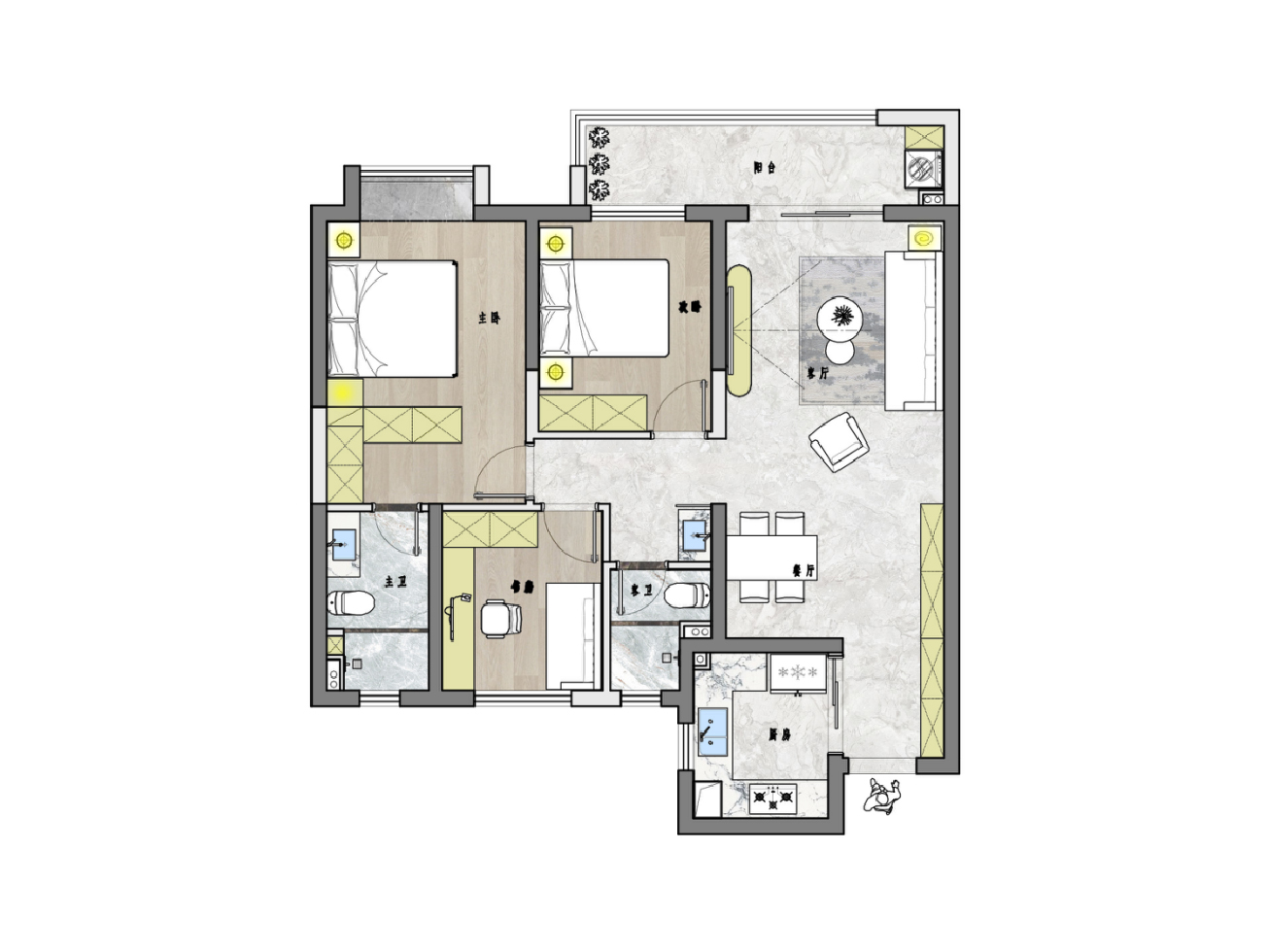 開闊通透公區(qū)+多功能次臥