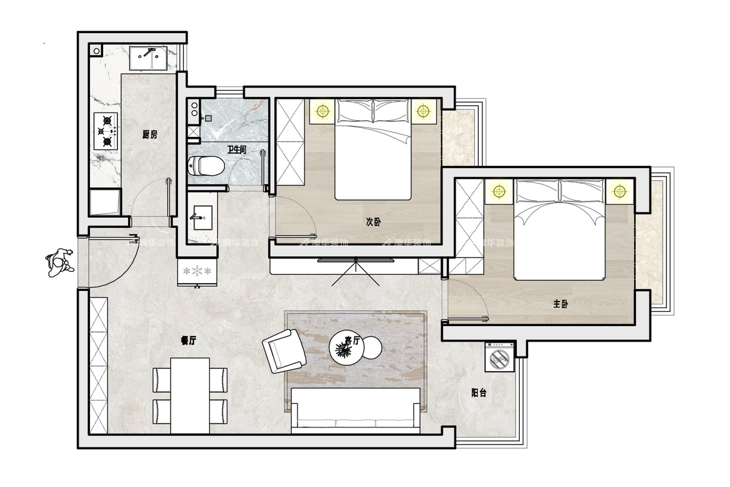 4、保留兩間臥室,滿足基本休憩需求